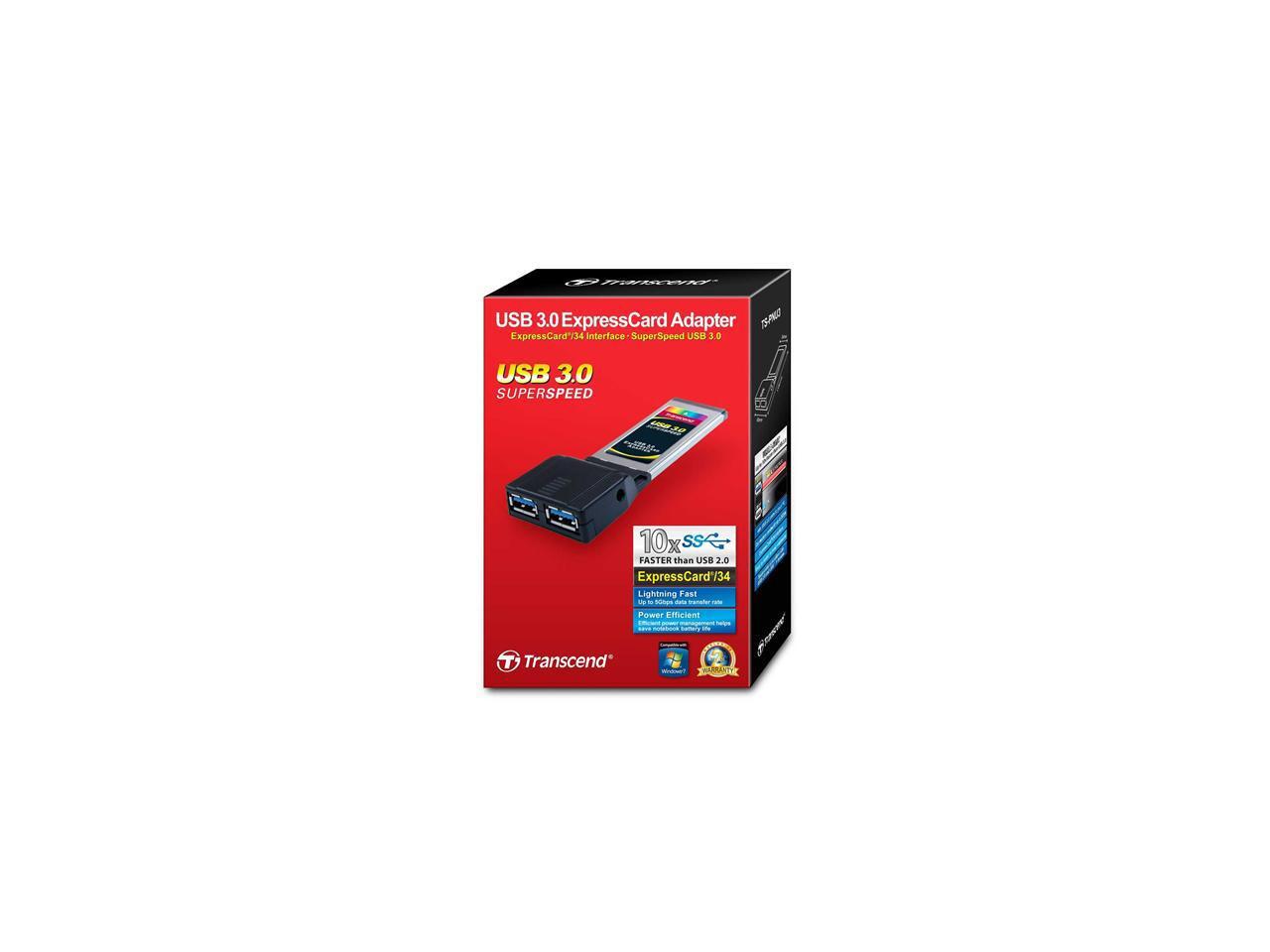 Transcend ExpressCard Adapter To Dual USB 3.0. Hi-Speed Express Card 5 Gbps Model TS-PNU3