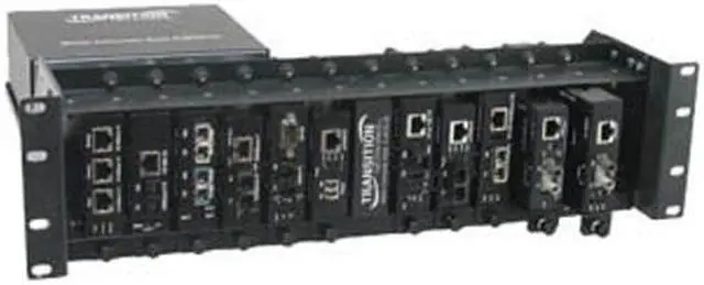 Simplify your installation of Transition Networks' standalone media converters with the Media Converter Rack. This 19" rack-mountable unit supports up to twelve media converters while the unique design allows for multiple connections, consolidated into a single device, making network connections easier and more efficient.