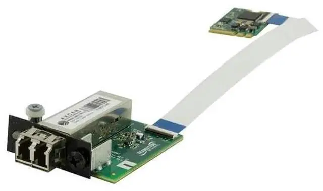 Transition Networks M.2 Gigabit Ethernet Fiber Network Interface Card (NIC) provides a fiber optic interface for the Dell OptiPlex 7040 and 7050 Micro PCs and the Wyse 7000 Series thin clients. The NM2-GXE-2230-xx-01 Series consists of a M.2 NIC that installs into the OptiPlex Micro PC's M.2 "E key" interface a fiber optic adapter that installs into the OptiPlex Micro PC's Option port and a 20-pin Flat Flex Cable (FFC) that connects the NIC to the fiber adapter. The fiber optic adapter is available with either a 1000Base-SX LC optic or open SFP (SFP module sold separately).