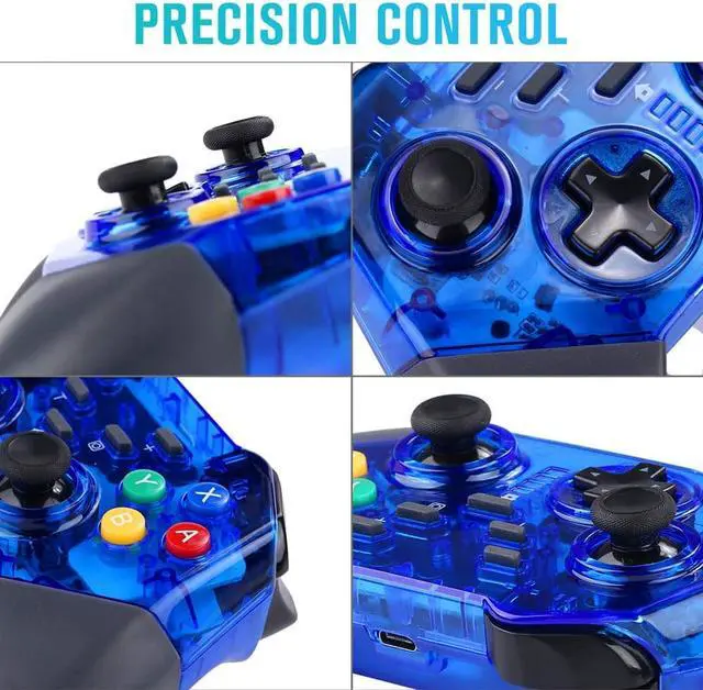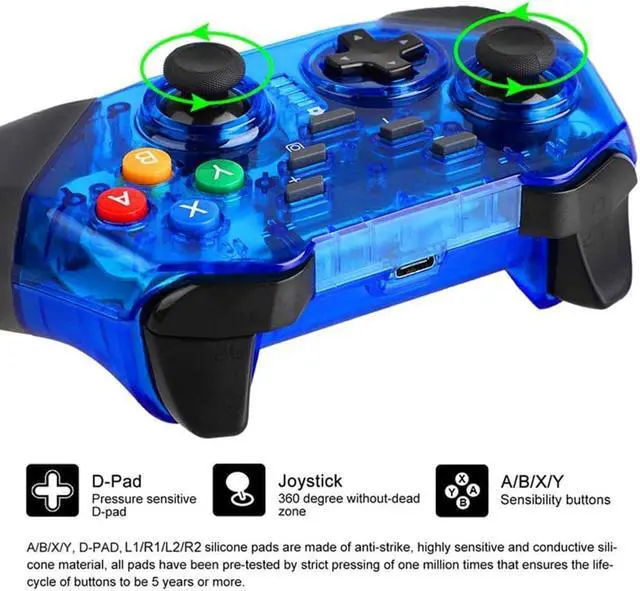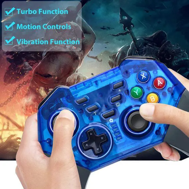 Power on a Switch console, on the main interface of the console click (by using your finger) “Controllers” ? “Change Grip/order” to come to pairing mode interface; press “HOME” key and hold for 4s to power a controller on, four LEDs in the controller start blinking slowly and circularly then blinking quickly and circularly after 4s, when one (or more) of the four LEDs is solid bright, it means that the controller is paired with the console successfully; press “B” key to return to the main interface of the console.