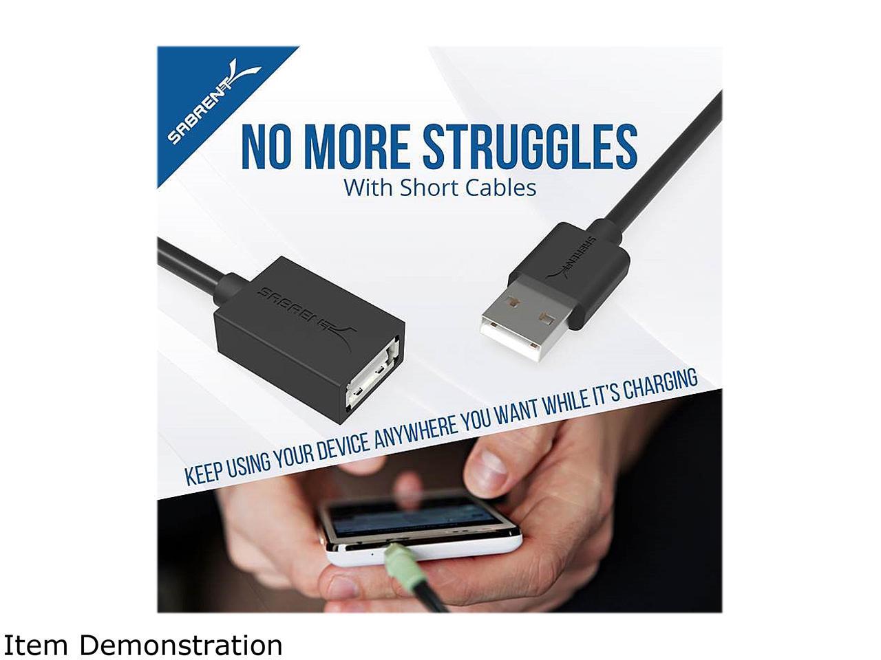 SABRENT CB-USBXT Transparent USB 2.0 Active Extension Cable Type A Male to Type A Female