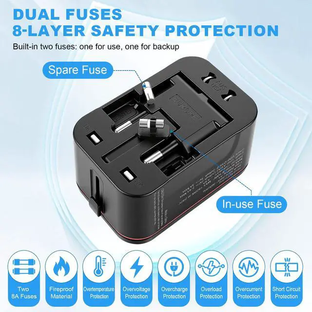 Built-in 2 fuses, automatically cuts off power when current exceeds 8A.