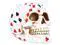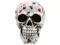 Mark Day of the Dead (Dia de los Muertos) with this beautiful polyresin skull decorated with with a white DOD design of playing card suits. Use all year to celebrate a departed soul or use as a unique skull figurine for Halloween decorations. The resin material is water resistant and holds up well to wear and tear. This gothic figurine has a flat bottom so it can sit on a shelf or windowsill and be displayed easily. A nicely sized skull sculpture with vibrant colors to sit on your altar de muertos. Add more color and interest to any room. Great dia de Los muertos decor.