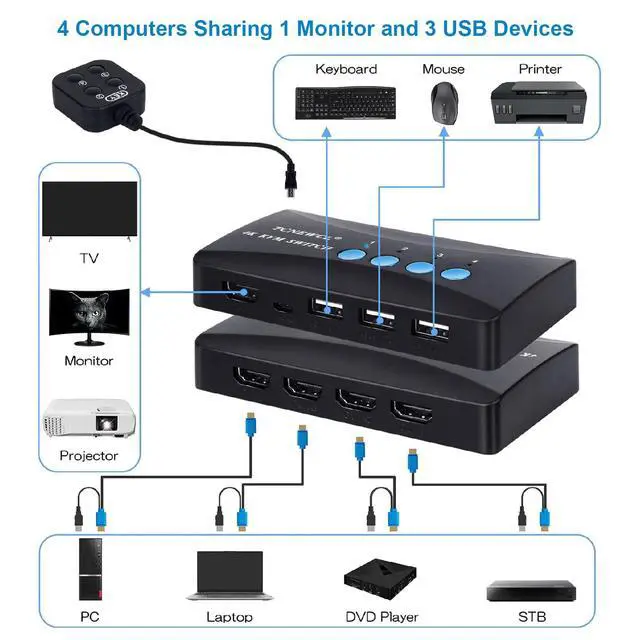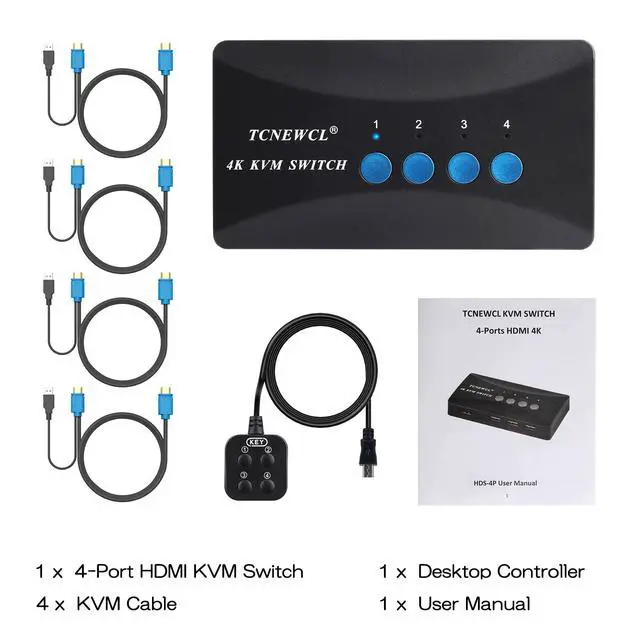 TCNEWCL HDMI USB KVM Switch 4 PC 1 Monitor