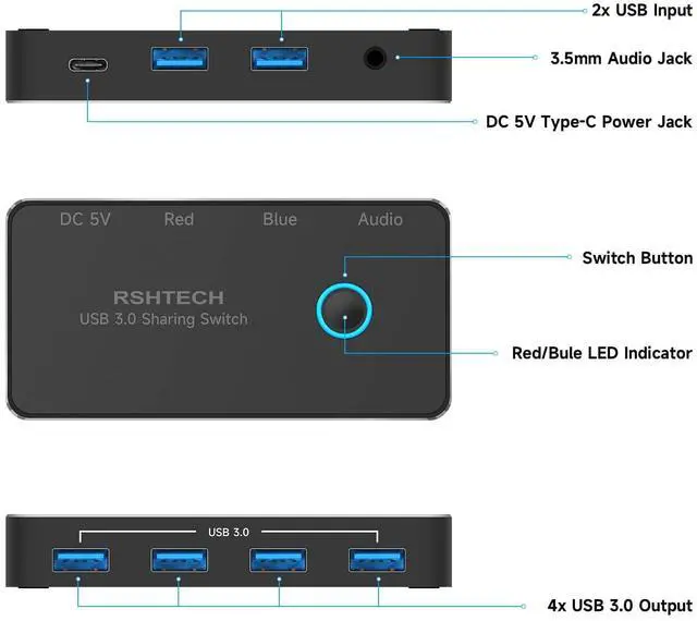 RSHTECH USB 3.0 Sharing Switch easily switches, reduces cable and accessory clutter, keeps your desk organized and provides productivity, it is an excellent choice if you have multiple PCs or laptops.