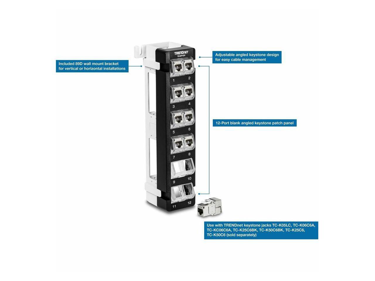 TRENDnet 12-Port Blank Angled Wall Mount Keystone Patch Panel, TC-KP12V