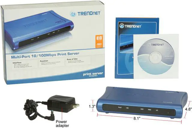 Share Multiple PrintersThe TRENDnet TE100-P21 print server features one parallel port, two USB 2.0 port and a RJ45 port for sharing up to three printers over your home or office network without a dedicated PC.