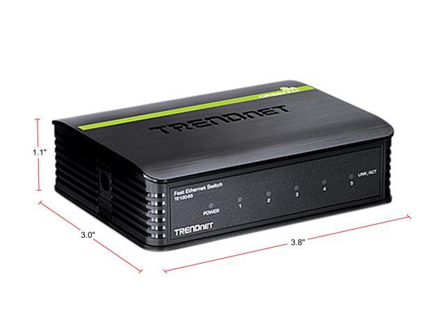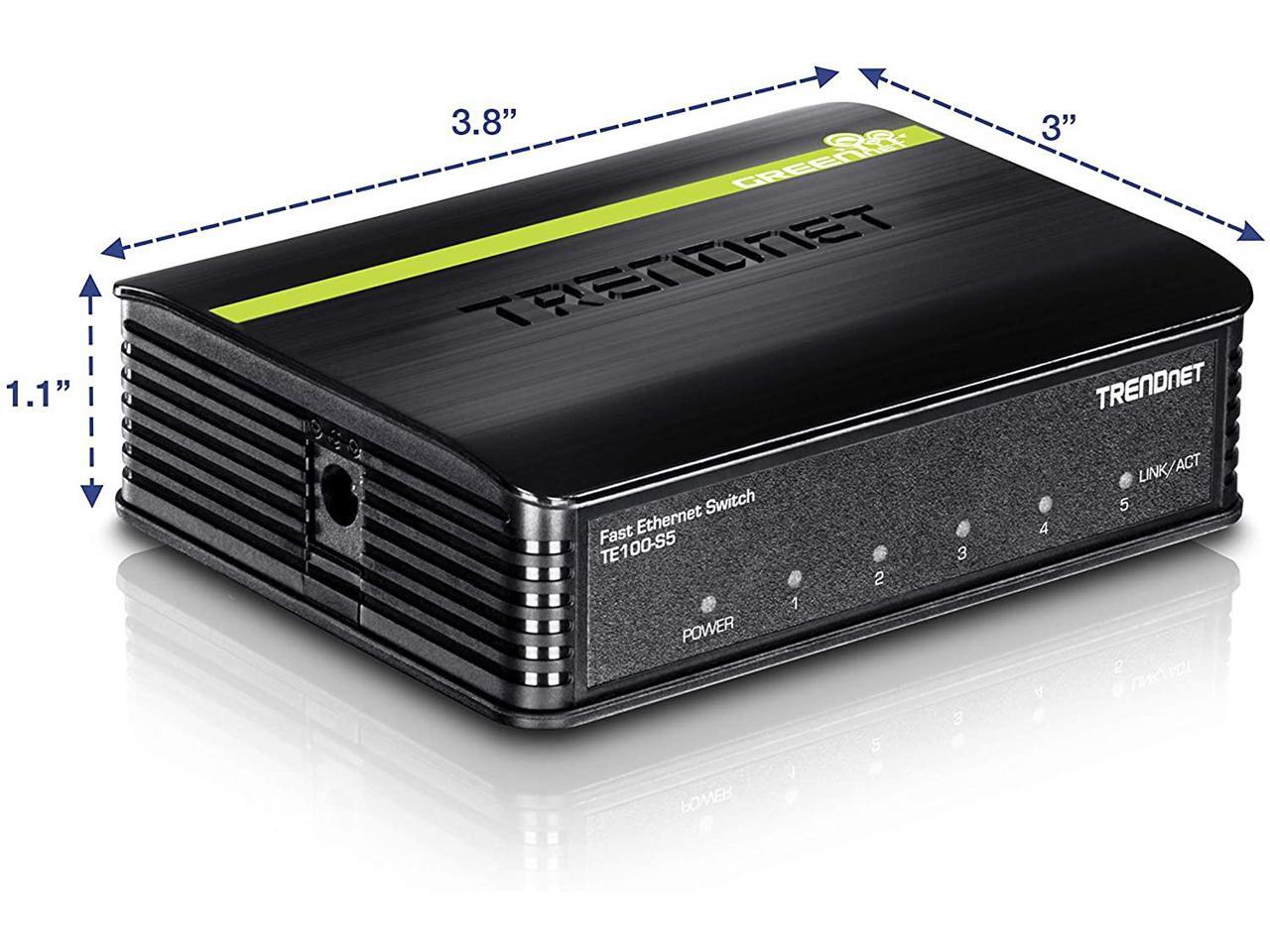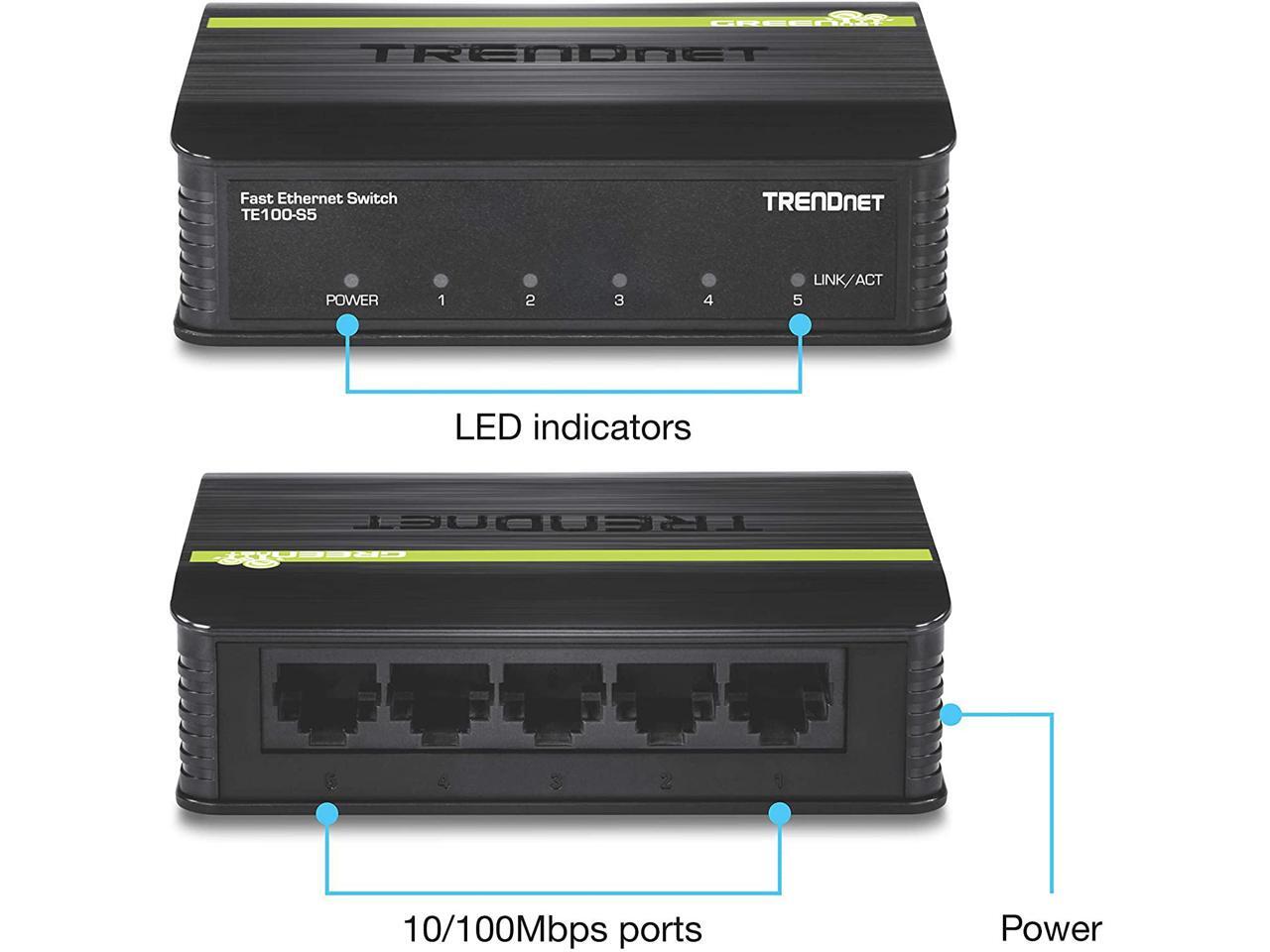 TRENDnet 5-Port Unmanaged 10/100 Mbps GREENnet Ethernet Desktop Plastic Housing Switch, 5 X 10/100 Mbps Ports, 1Gbps Switching Capacity, TE100-S5