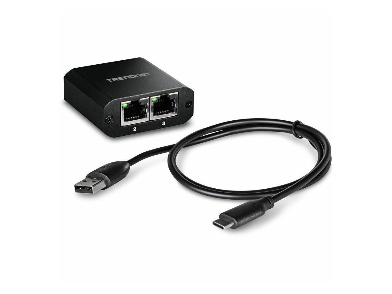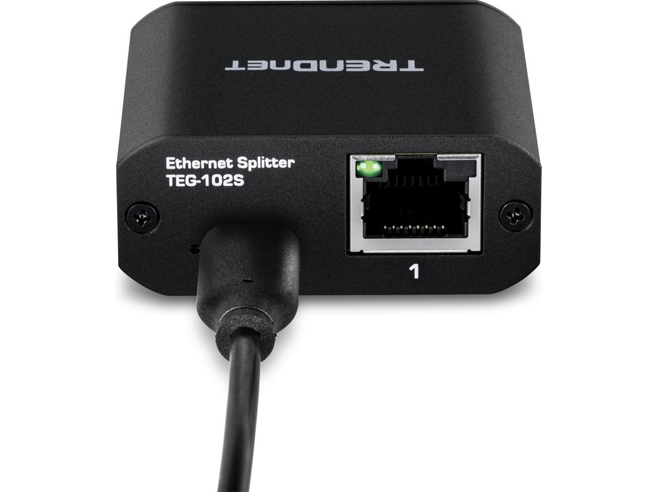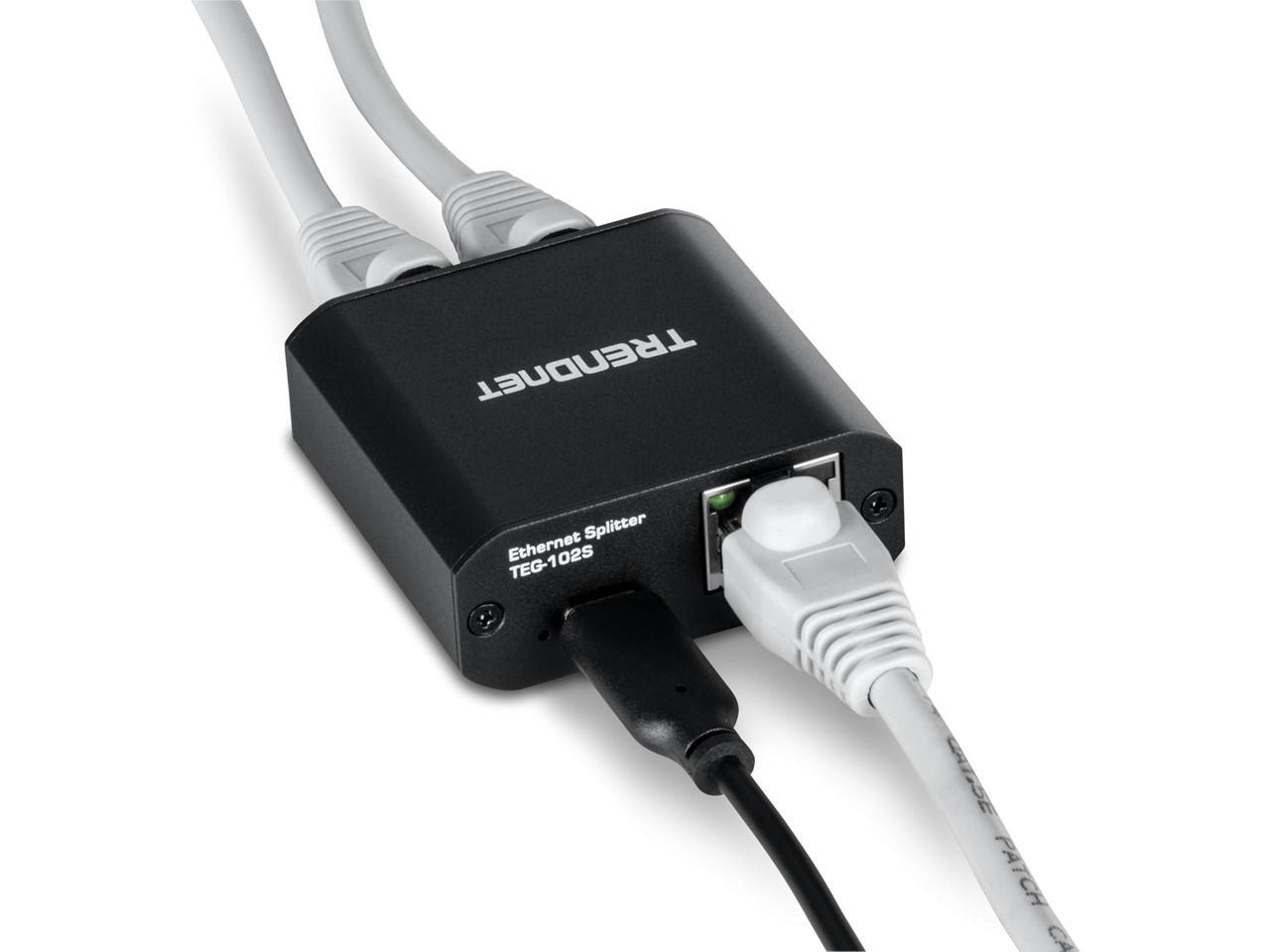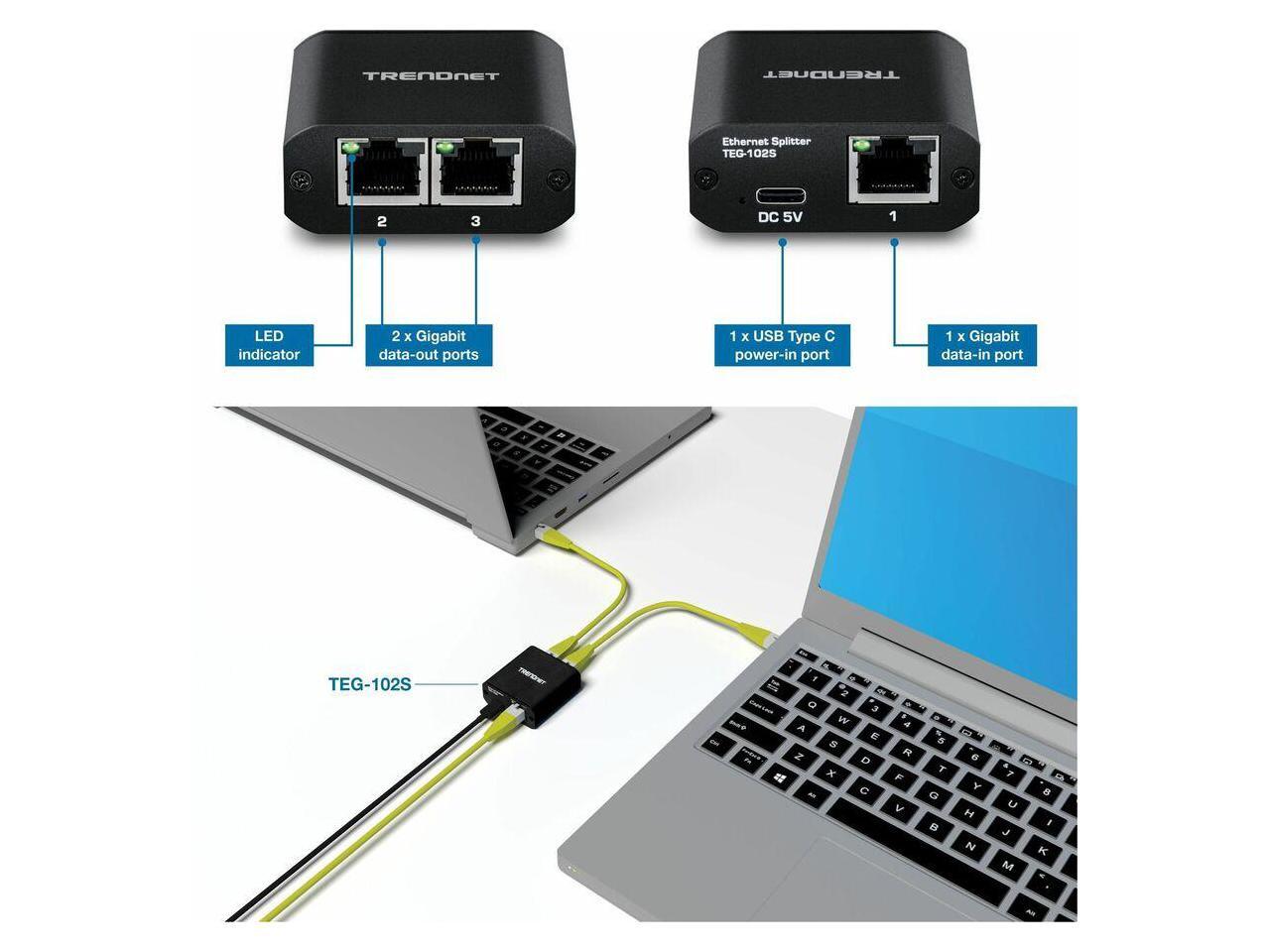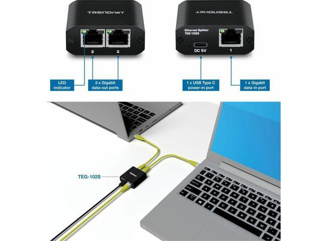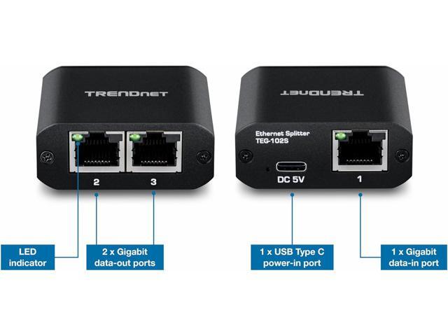 TRENDnet 2-Port Gigabit Splitter with USB Type C Power, TEG-102S, Splits One Network Connection Into Two, Ethernet Splitter, USB Type C Power Cable Included, NDAA & TAA Compliant