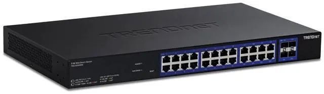 TRENDnets 28-Port Multi-Gig Web Smart Switch, model TEG-3284WS, offers advanced L2+ features with enhanced traffic management controls to meet the evolving demands of todays SMB networks. This rack-mountable IPv6-ready managed switch comes with an intuitive web-based interface. Advanced managed switch features include LACP to increase bandwidth between switches by grouping ports together, VLANs for segmenting and isolating virtual LAN groups, QoS for traffic prioritization, port bandwidth controls, and SNMP monitoring. Improve voice performance by isolating and prioritizing VoIP traffic from normal data traffic with an easy-to-use voice VLAN feature. TEG-3284WS Easily manage and configure this web smart managed switch remotely with access to TRENDnet Hive.