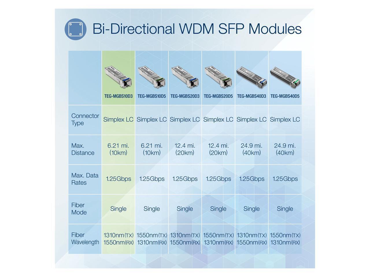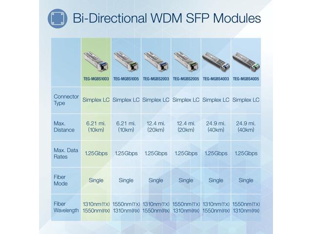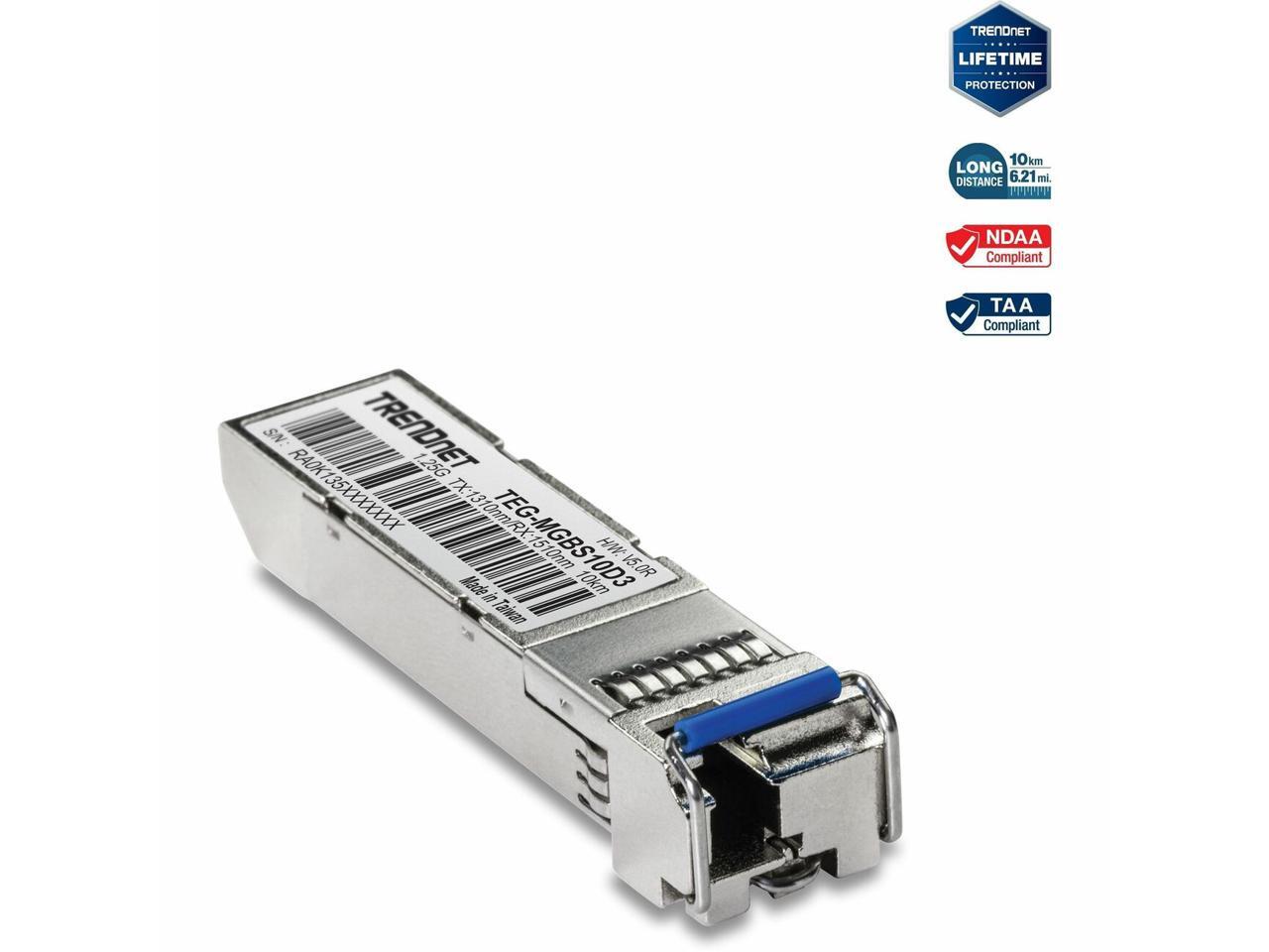 TRENDnet SFP to RJ45 Dual Wavelength Single-Mode LC Module, TEG-MGBS10D3, Must Pair with TEG-MGBS10D5 or a Compatible Module, Up to 10 km (6.2 Miles), Compatible with Standard SFP