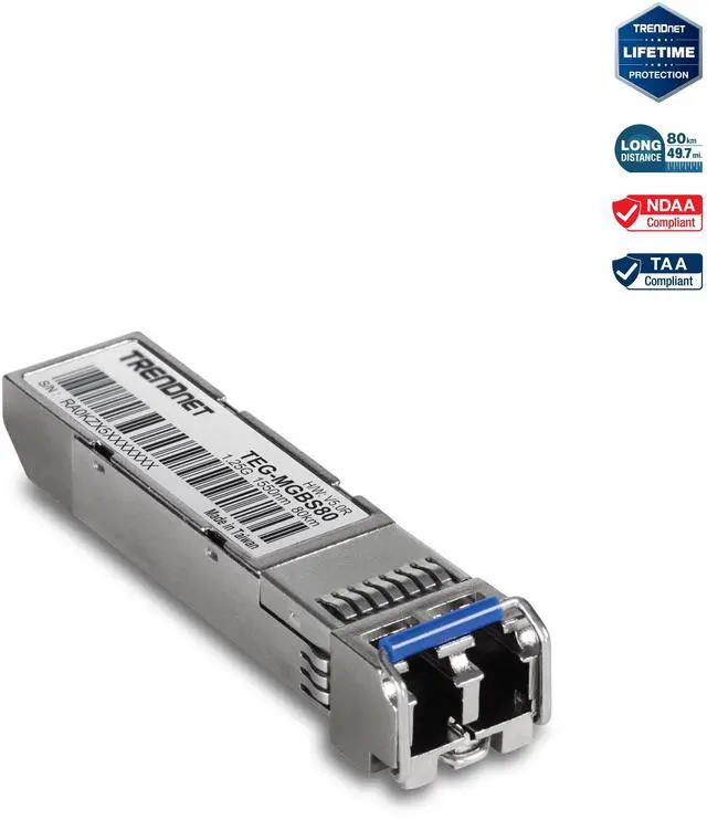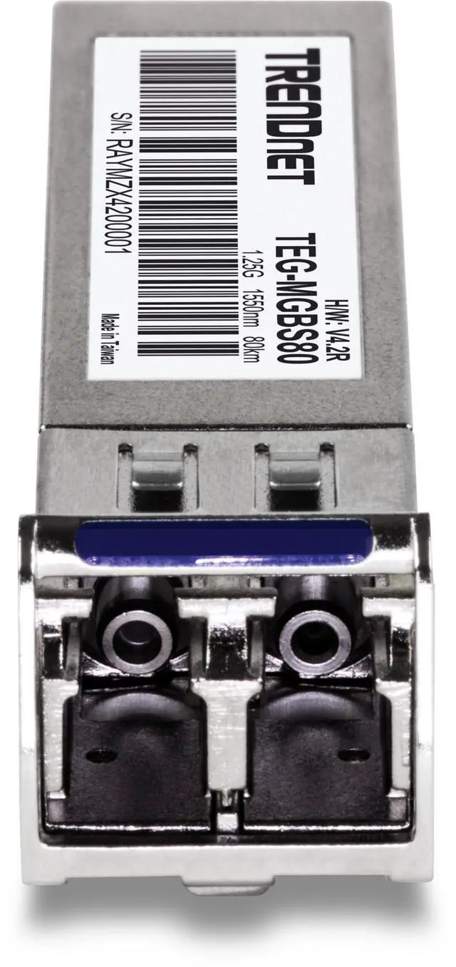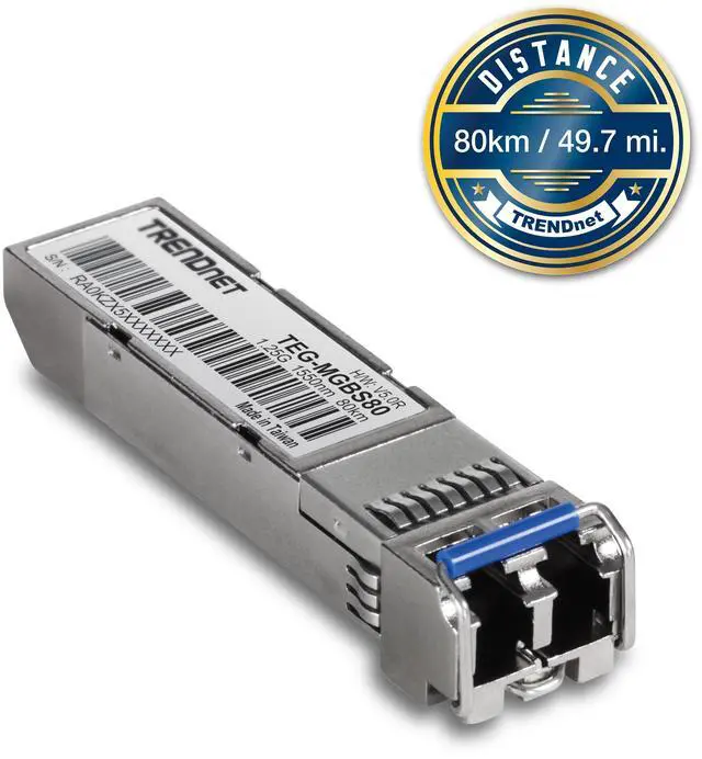 TRENDnet SFP to RJ45 Mini-GBIC Single-Mode LC Module, TEG-MGBS80, Mini-GBIC Module for Single Mode Fiber, LC Connector Type, Up to 80 Km (49.7 Miles), 1.25Gbps Gigabit Ethernet, Lifetime Protection