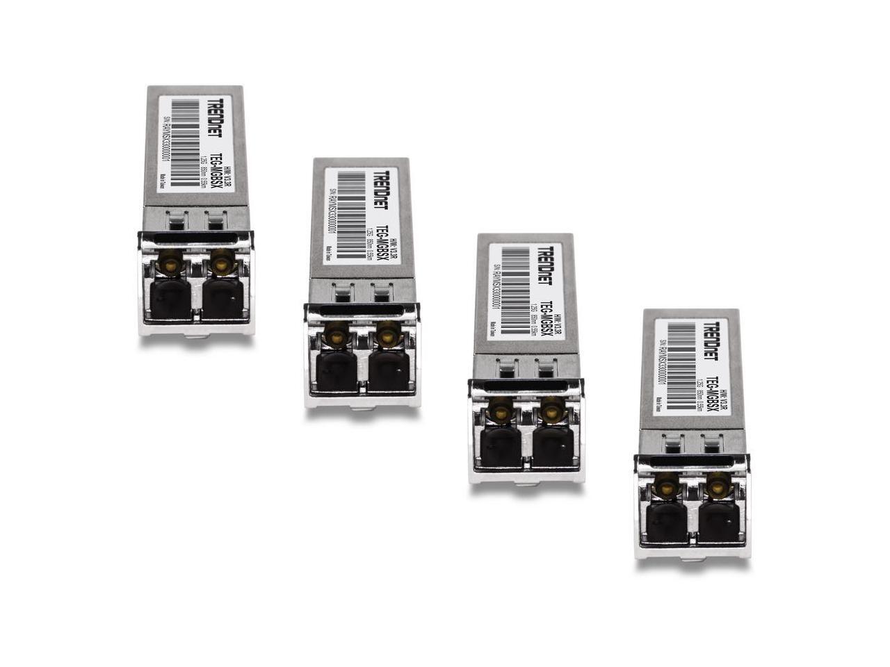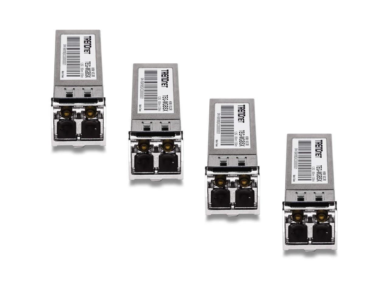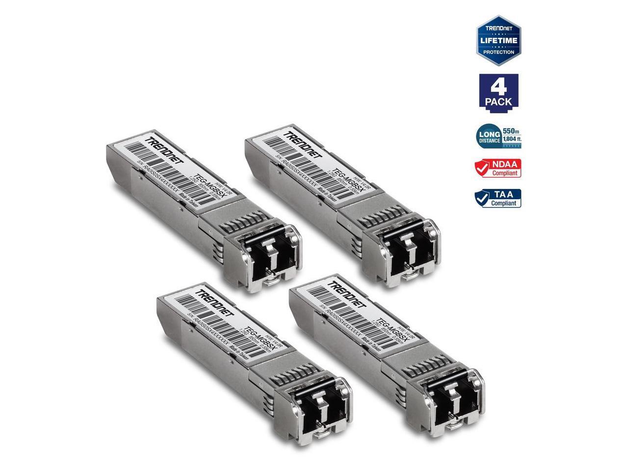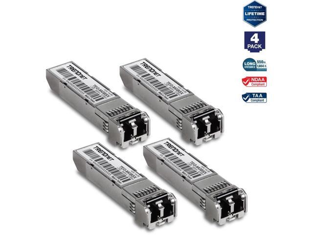 TRENDnet SFP Multi-Mode LC Module 4-Pack, TEG-MGBSX/4, Transmission Up to 550m (1804 Ft), Mini-GBIC, Hot Pluggable, IEEE 802.3z Gigabit Ethernet, Supports Up to 1.25 Gbps, Lifetime Protection