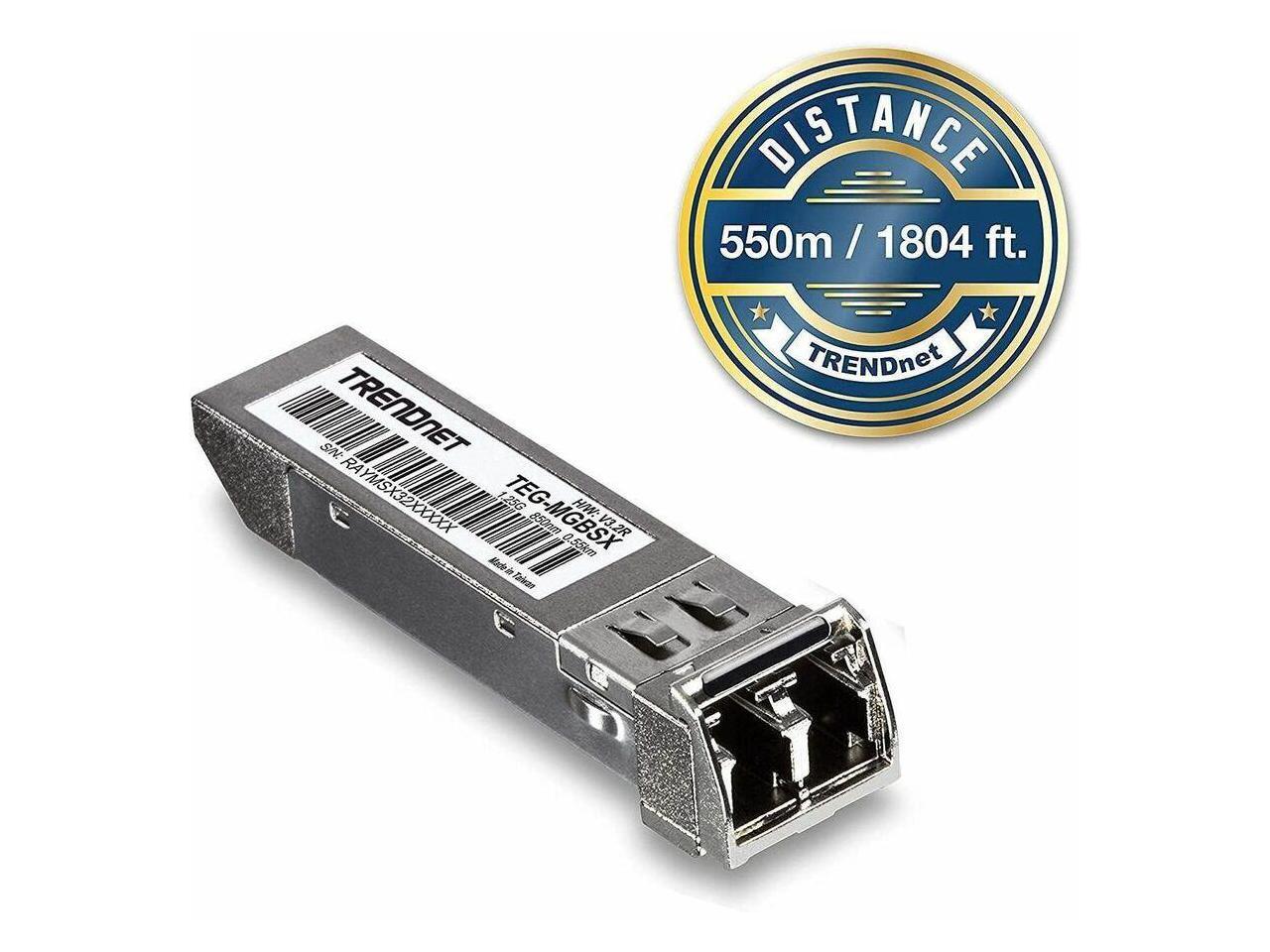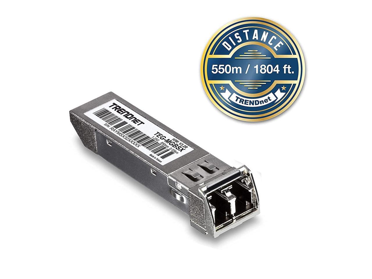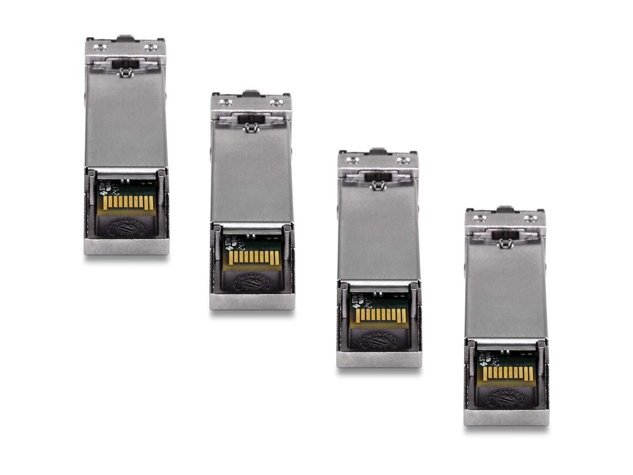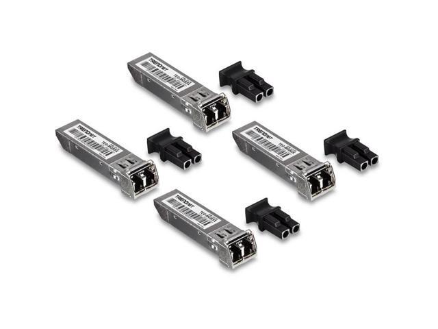TRENDnet SFP Multi-Mode LC Module 4-Pack, TEG-MGBSX/4, Transmission Up to 550m (1804 Ft), Mini-GBIC, Hot Pluggable, IEEE 802.3z Gigabit Ethernet, Supports Up to 1.25 Gbps, Lifetime Protection