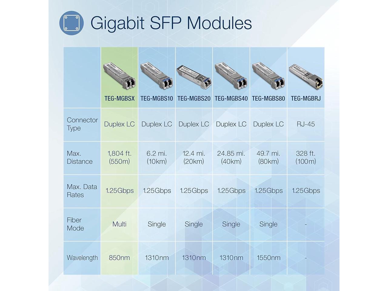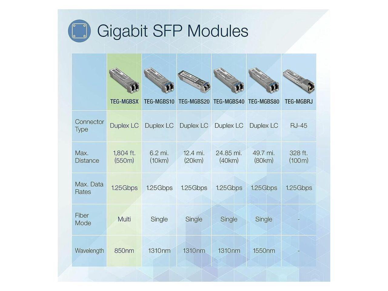 Includes four TEG-MGBSX SFP modules