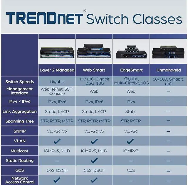 PLUG AND PLAY: Simply power up the switch and plug in connected devices. No software to install or configuration needed.