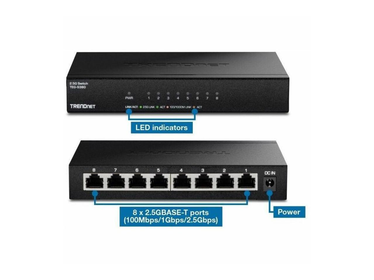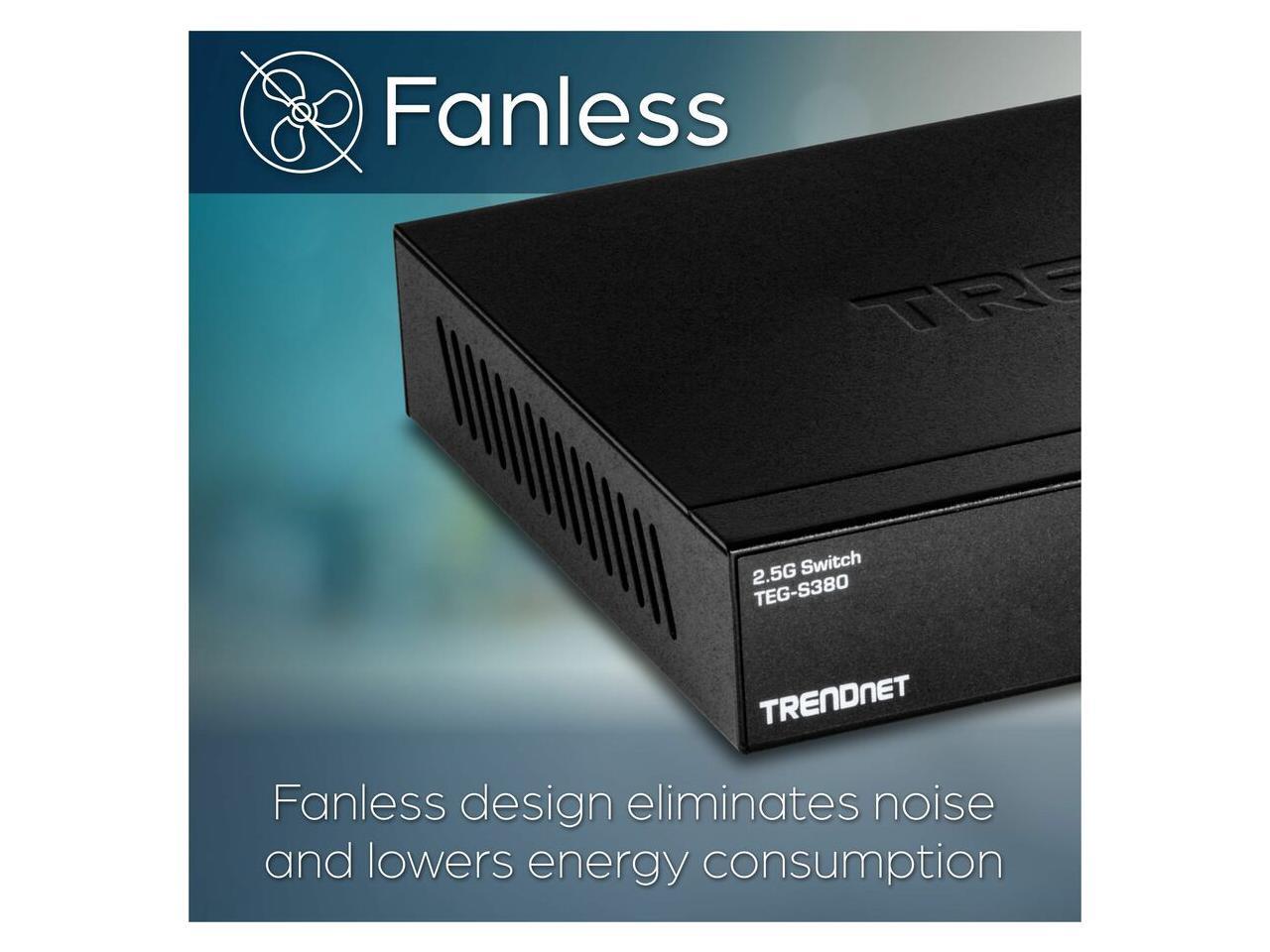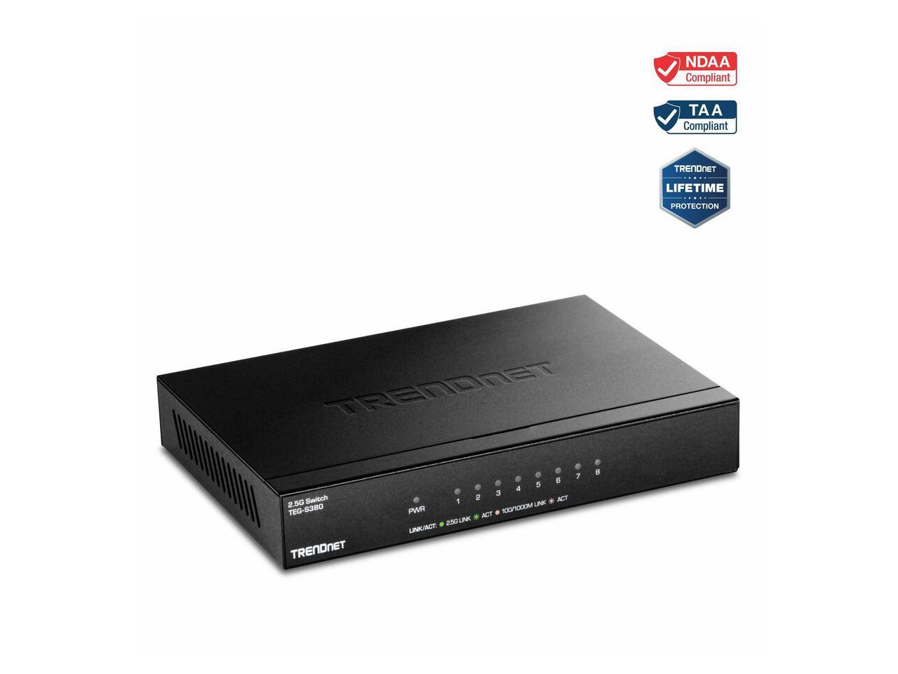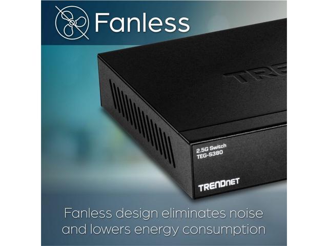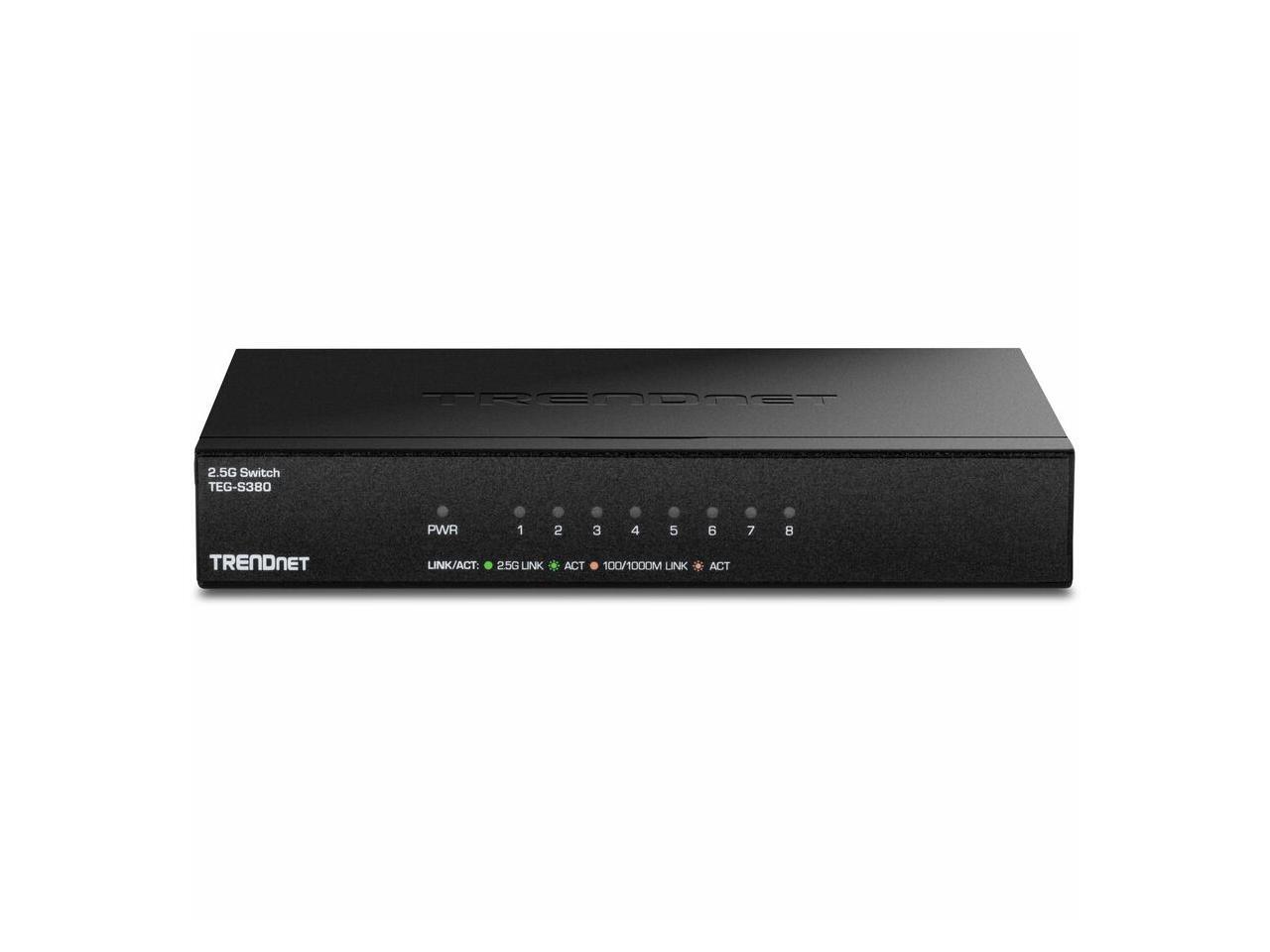 TRENDnet 8-Port Unmanaged 2.5G Switch, 8 x 2.5GBASE-T Ports, 40Gbps Switching Capacity, Backwards Compatible with 10-100-1000Mbps Devices, Fanless, Wall Mountable, Black, TEG-S380