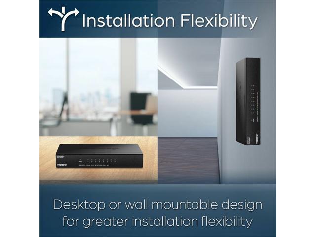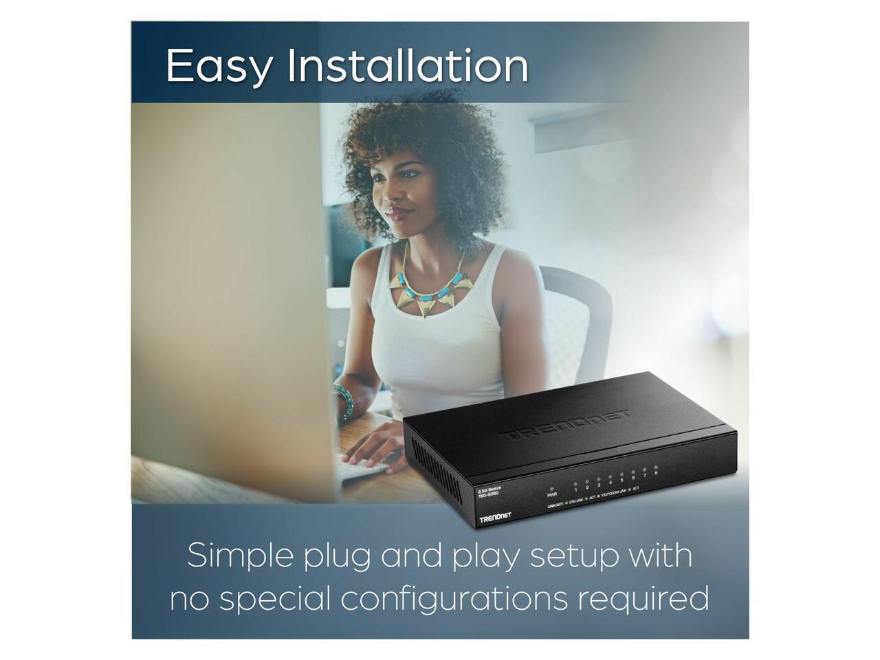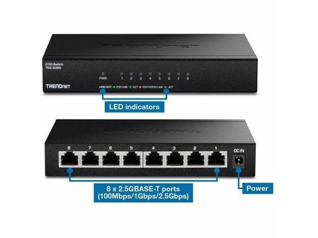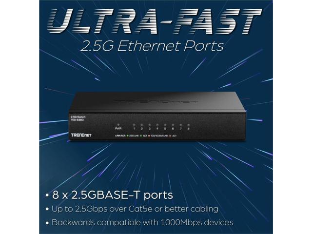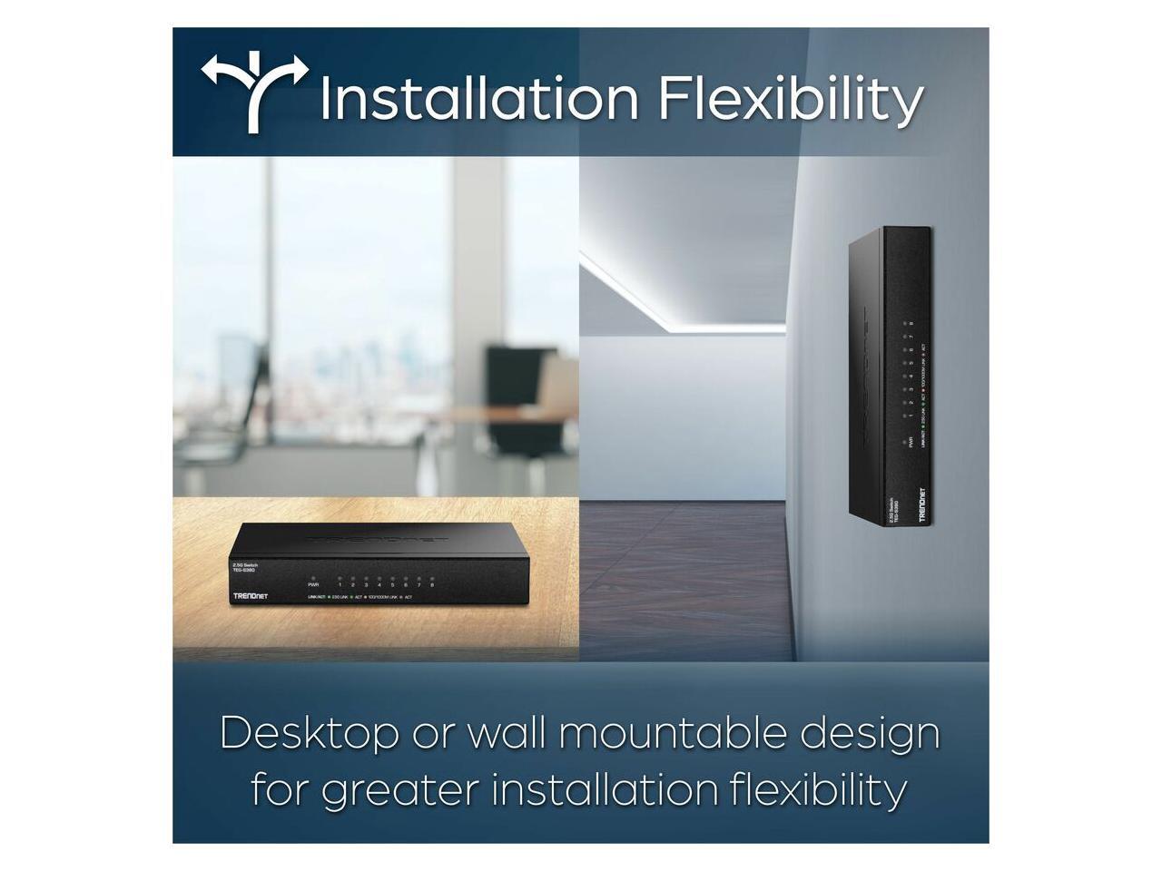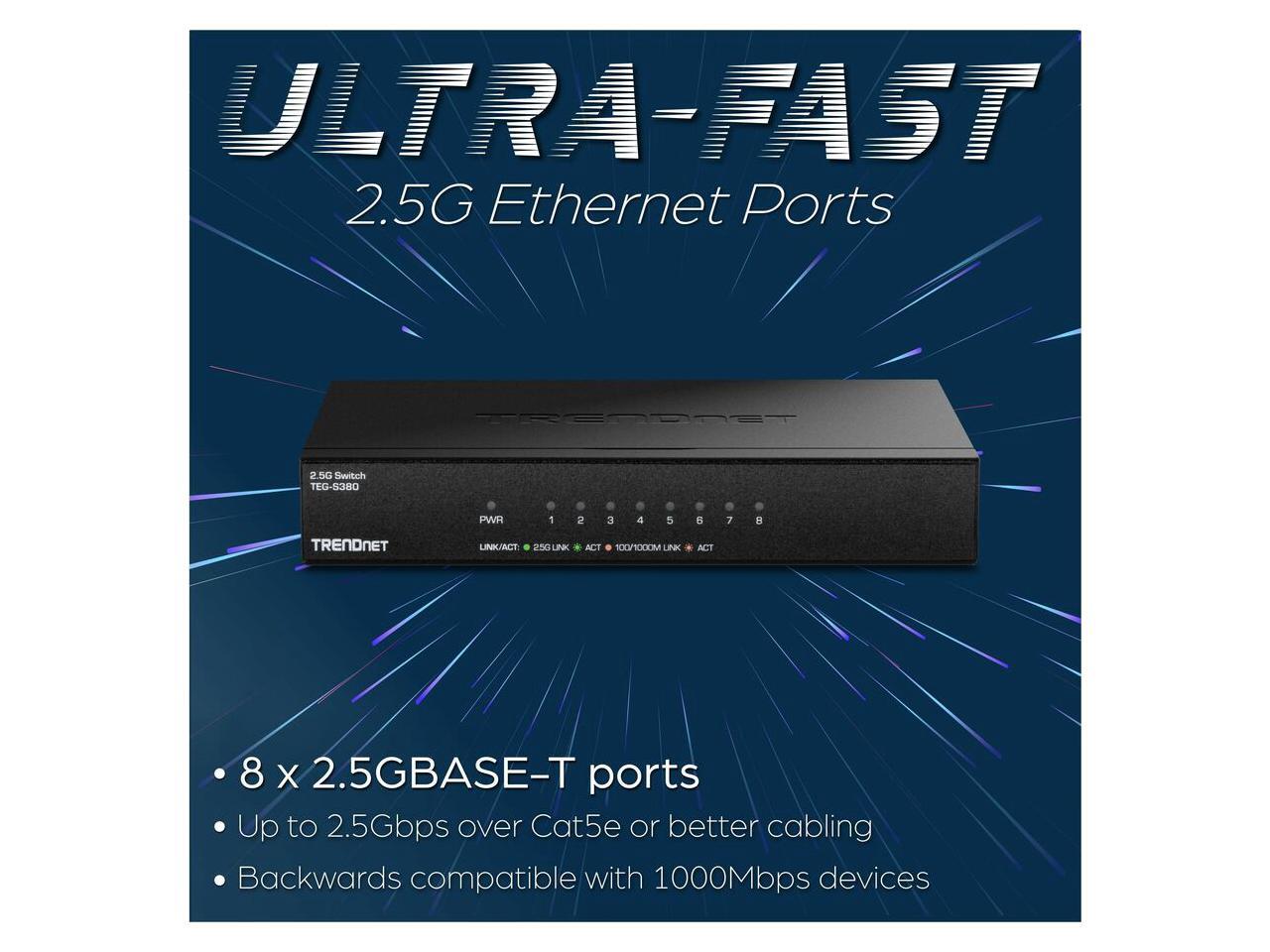 TRENDnet 8-Port Unmanaged 2.5G Switch, 8 x 2.5GBASE-T Ports, 40Gbps Switching Capacity, Backwards Compatible with 10-100-1000Mbps Devices, Fanless, Wall Mountable, Black, TEG-S380