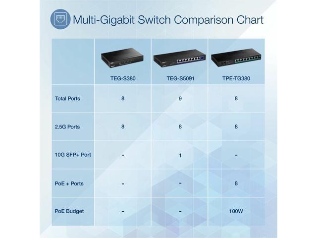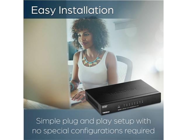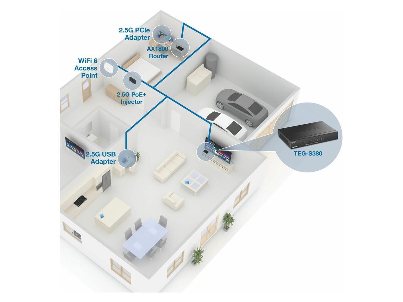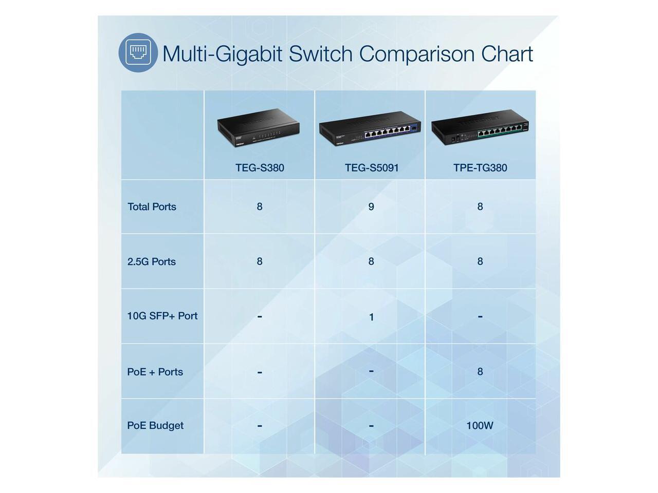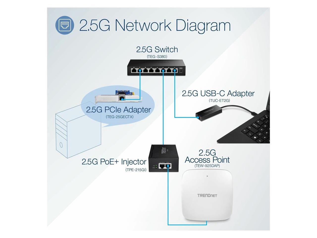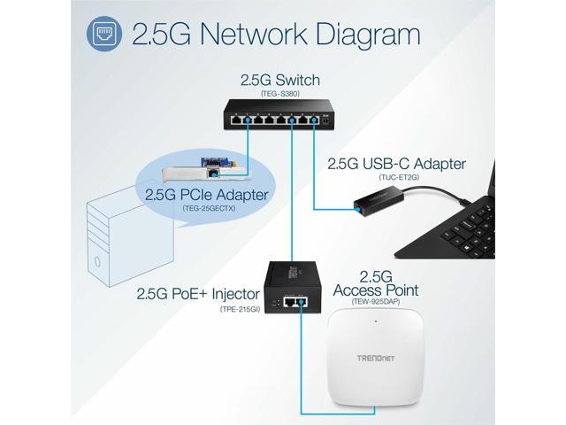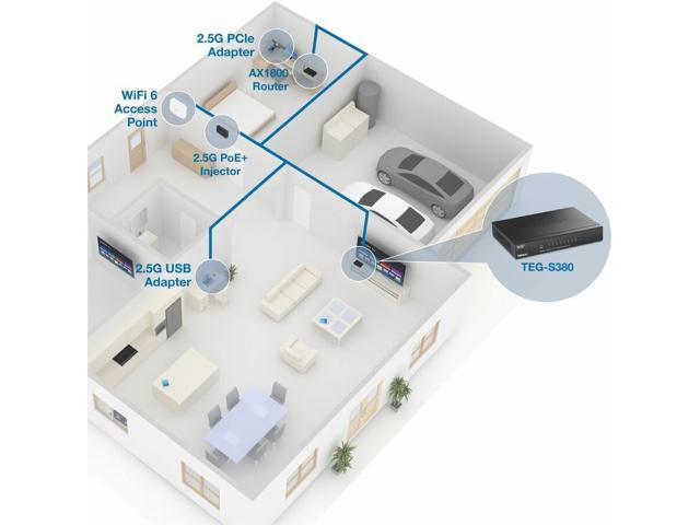 TRENDnet 8-Port Unmanaged 2.5G Switch, 8 x 2.5GBASE-T Ports, 40Gbps Switching Capacity, Backwards Compatible with 10-100-1000Mbps Devices, Fanless, Wall Mountable, Black, TEG-S380