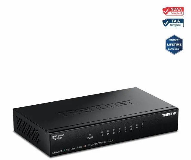Expand your networks bandwidth and reduce bottlenecks with TRENDnets 8-Port 2.5G Switch, model TEG-S381. The 2.5G