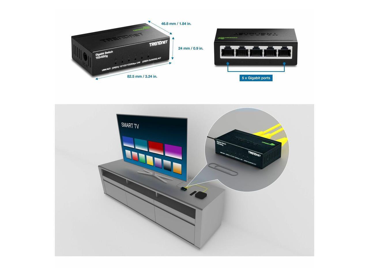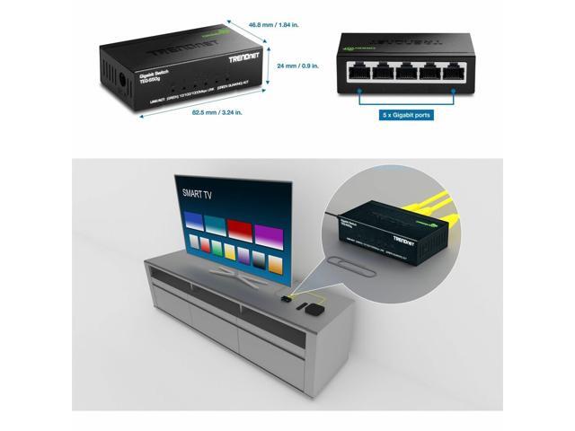 TRENDnet 5-Port Unmanaged Gigabit GREENnet Desktop Metal Switch, Ethernet-Network Switch, 5 x Gigabit Ports, Fanless, 10 Gbps Switching Fabric, Lifetime Protection, Black, TEG-S50g