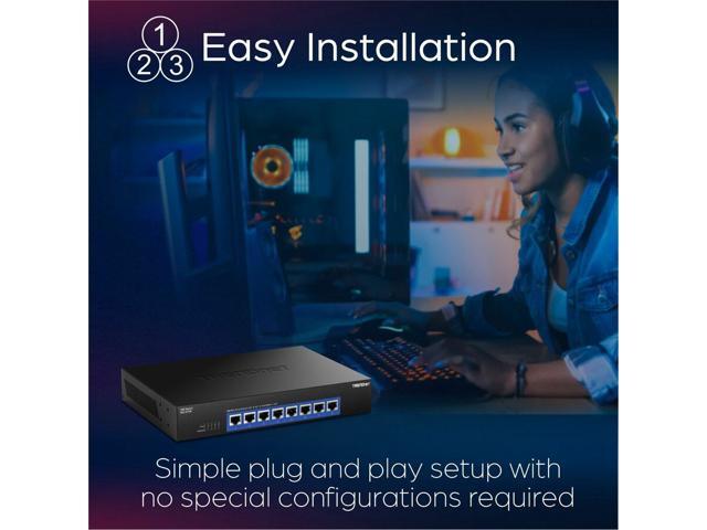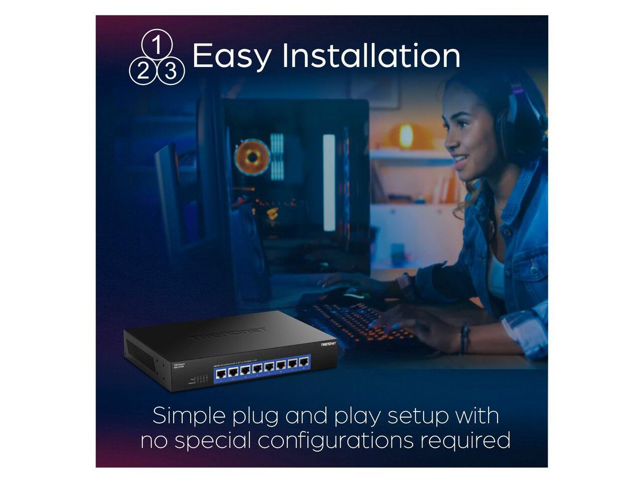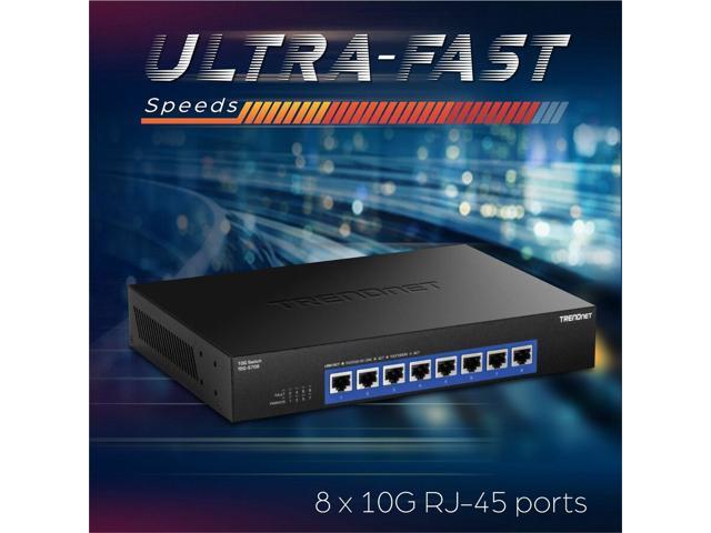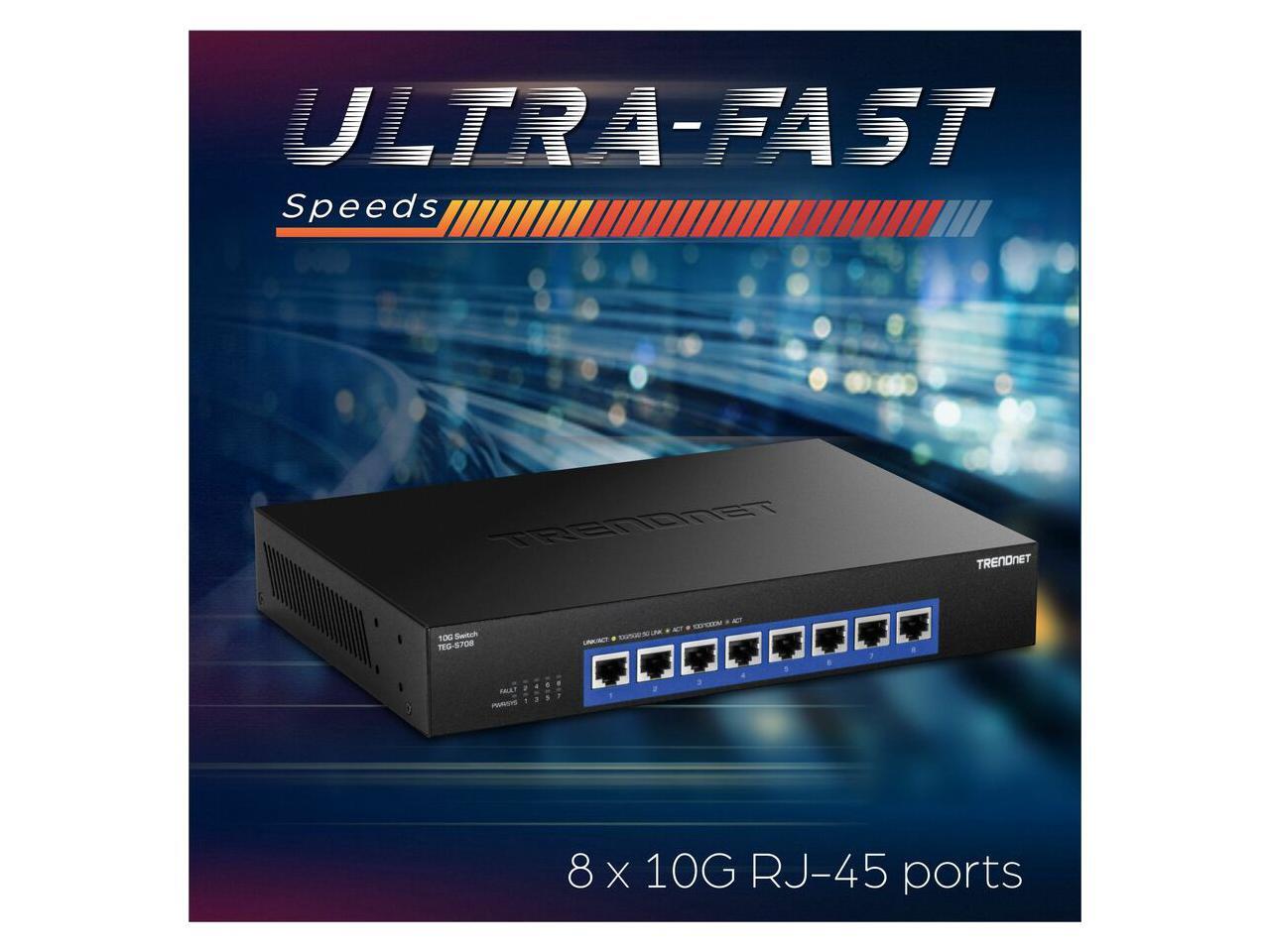 TRENDnet 8-Port 10G Switch, TEG-S708, 8 x 10G RJ-45 Ports, 160Gbps Switching Capacity Rack mountable, Ethernet Splitter, NDAA & TAA Compliant, Lifetime Protection, Black