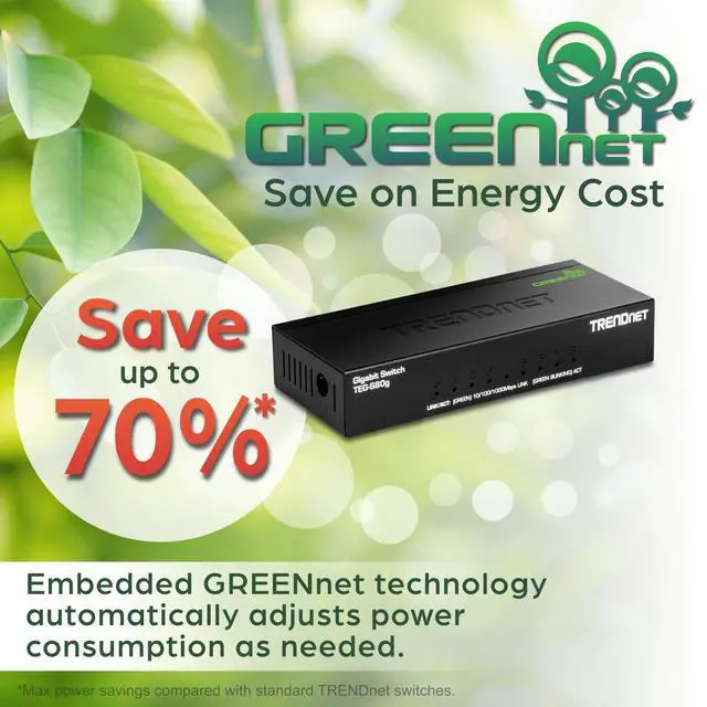 Embedded GREENnet technology provides cost savings and reduces power consumption. It works right out of the box with no management required.