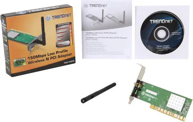 The 150Mbps Low Profile Wireless N PCI Adapter, model TEW-703PIL, connects a low profile desktop computer to a high speed wireless n network.
