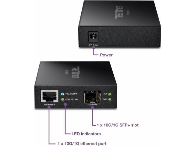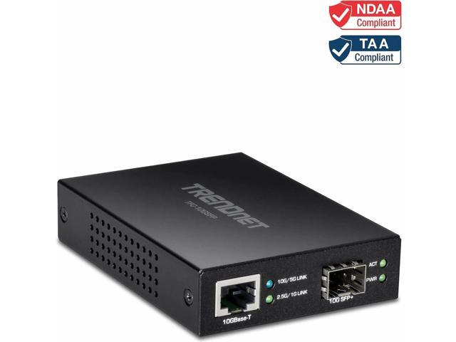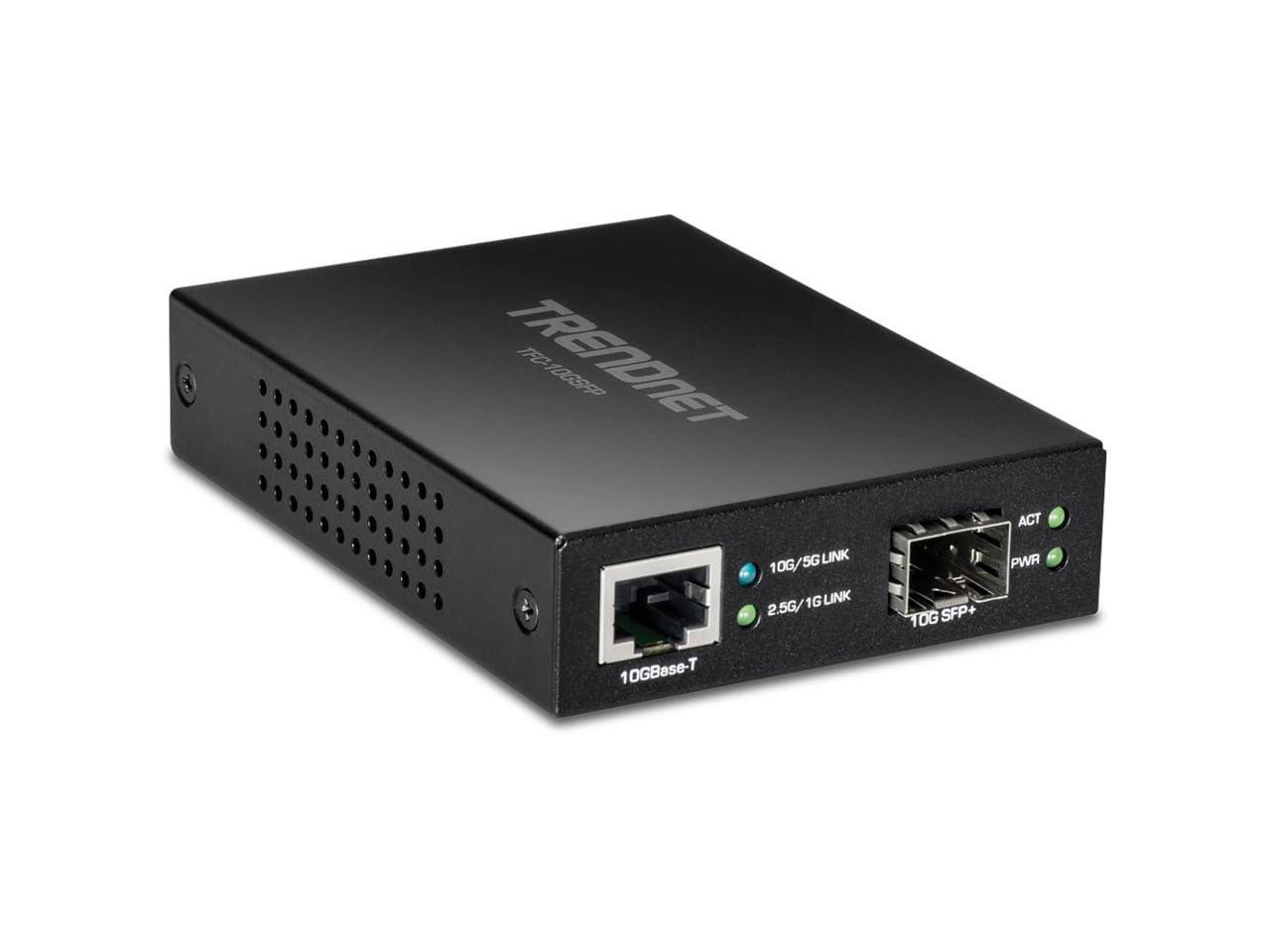 TRENDnet 10GBASE-T to SFP+ Fiber Media Converter, TFC-10GSFP, 1 x 10G RJ-45 Port, 1 x 10Gbps SFP+ Slot, SFP+ to 10G RJ-45, Power Adapter Included