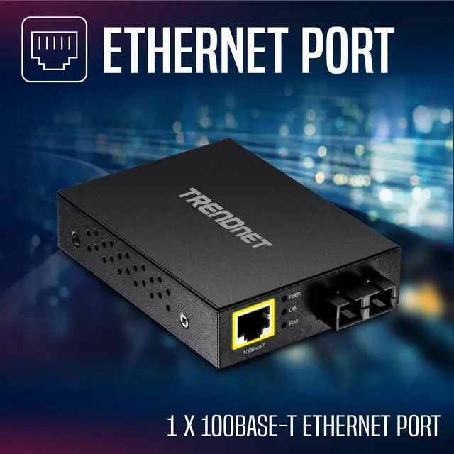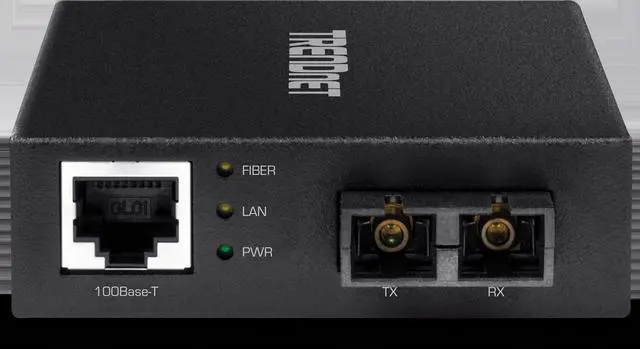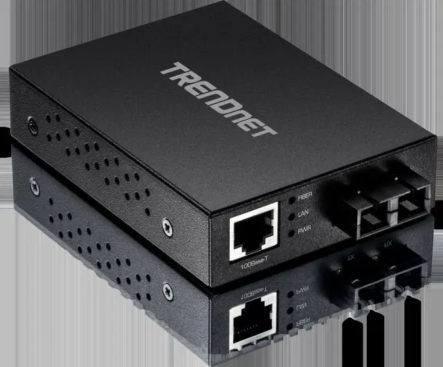 TRENDnets TFC-FMSC, Fast Ethernet Fiber Converter, is a Multi-Mode SC-Type fiber converter that converts 10/100 Mbps Ethernet to 100 Mbps Fiber and spans distances up to 2 km ( 1.25 mi. ). Ports include a 100Base-T (RJ-45) port and a 100Base-FX (SC-Type) fiber port.