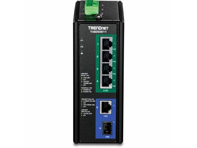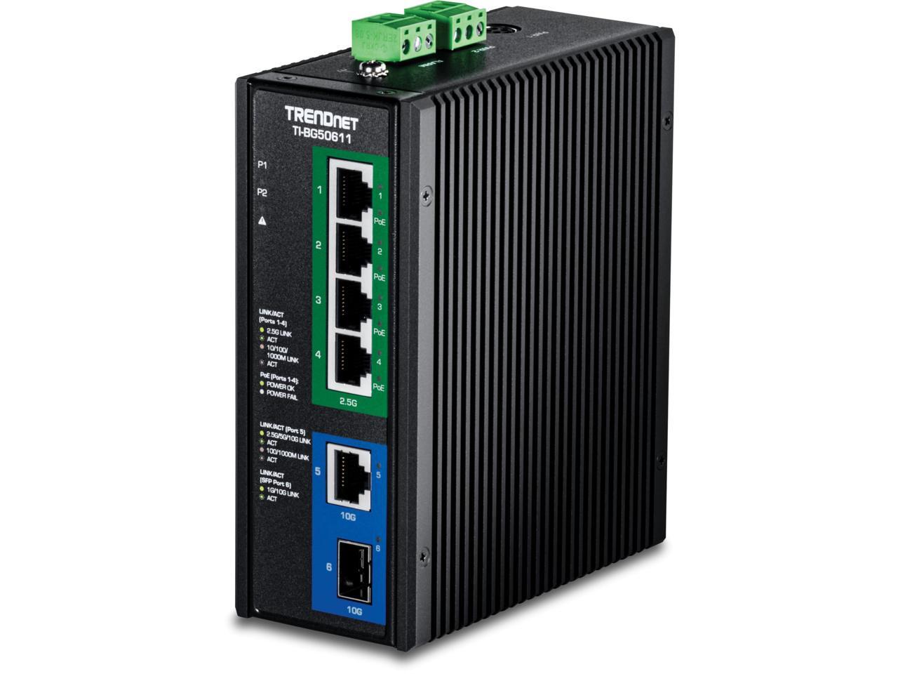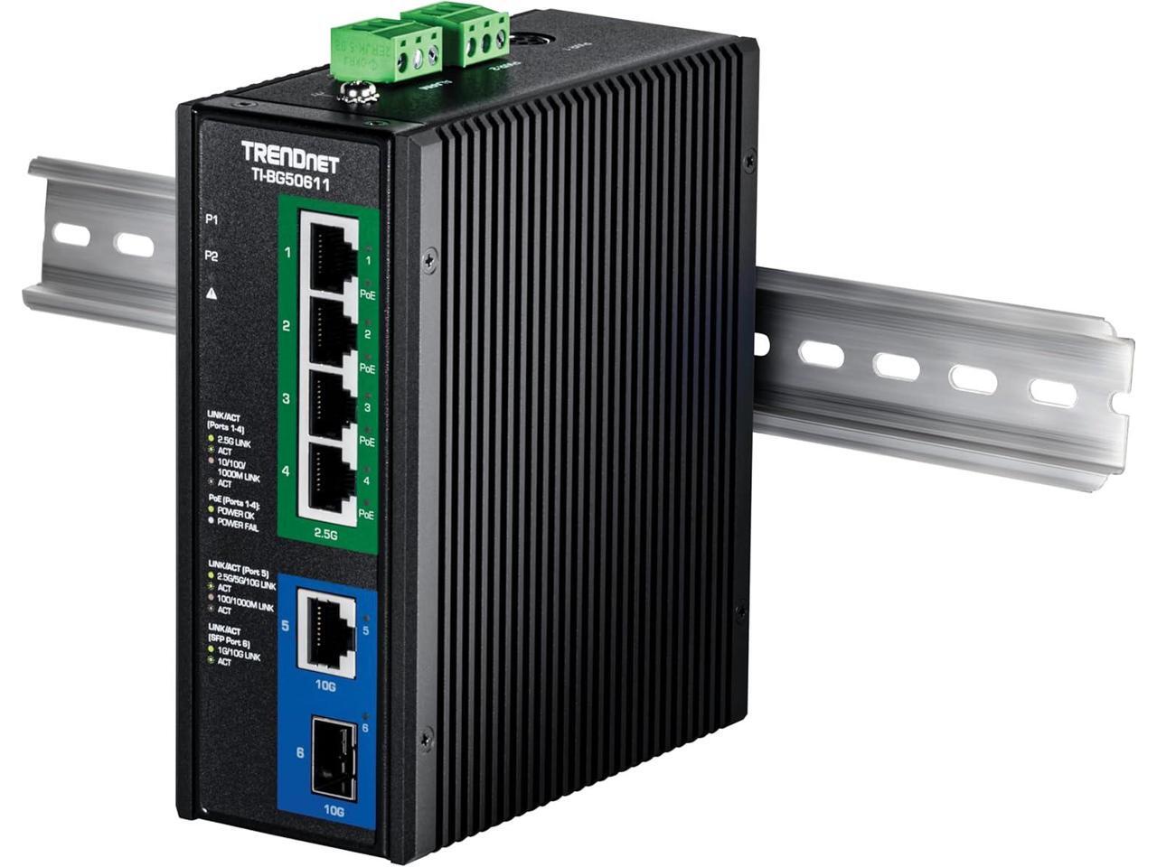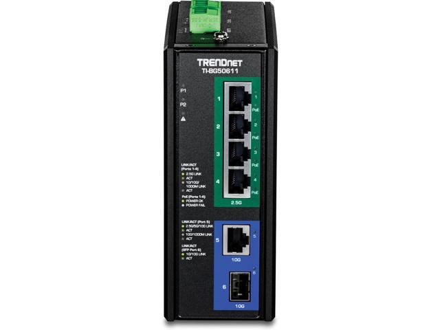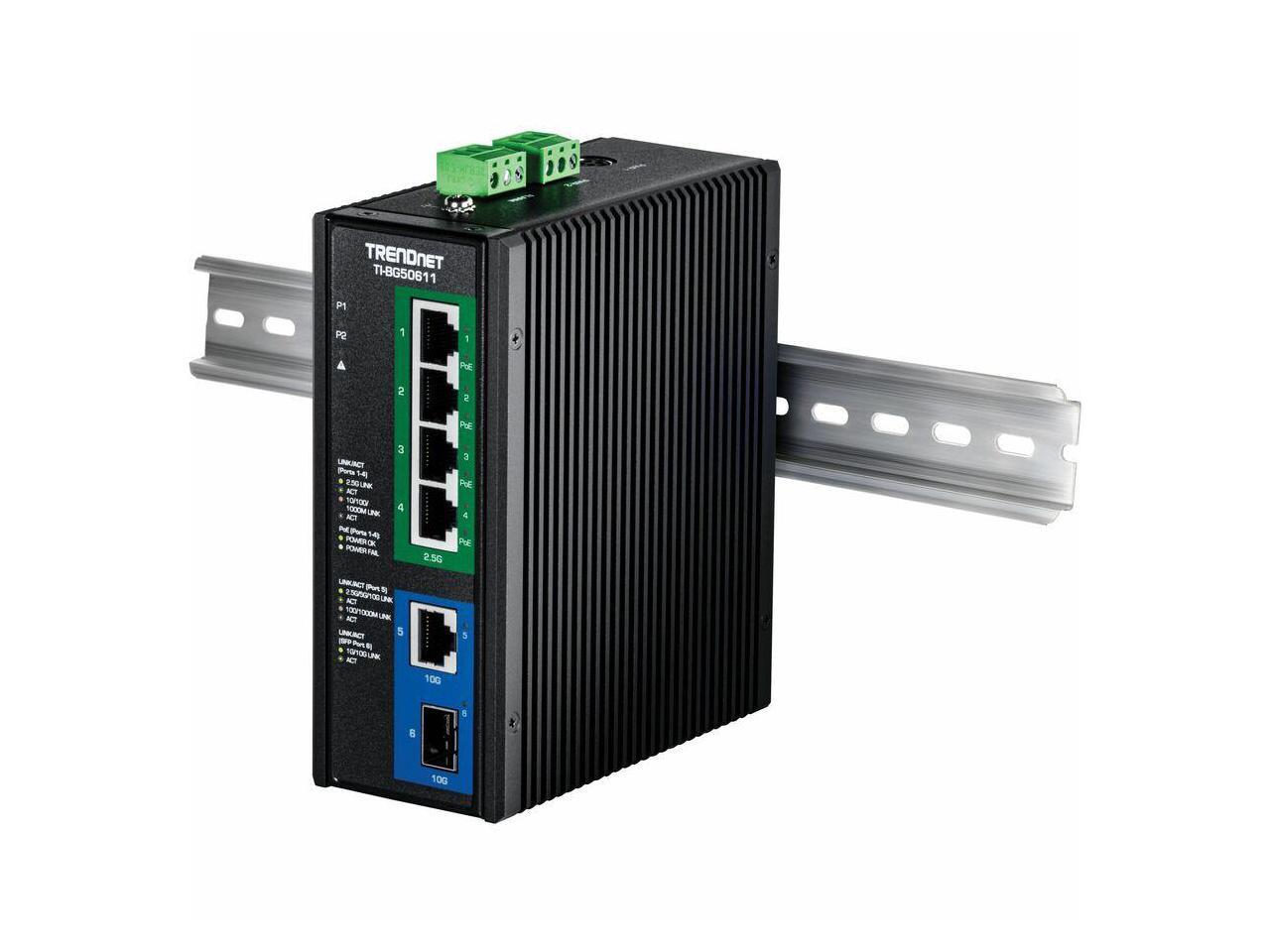 TRENDnet TI-BG50611 6-Port Industrial 2.5G PoE++ DIN-Rail Switch with 10G Ports