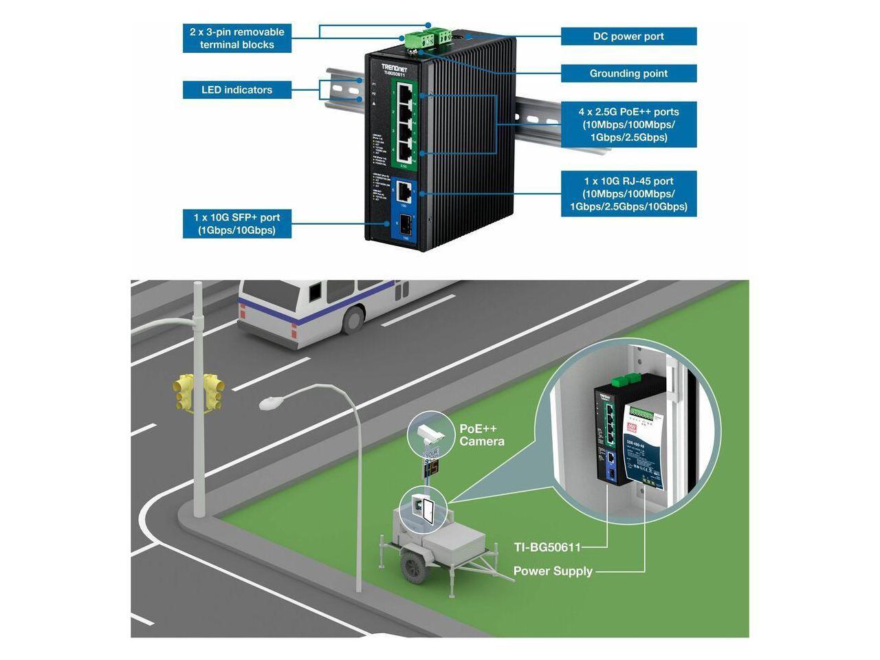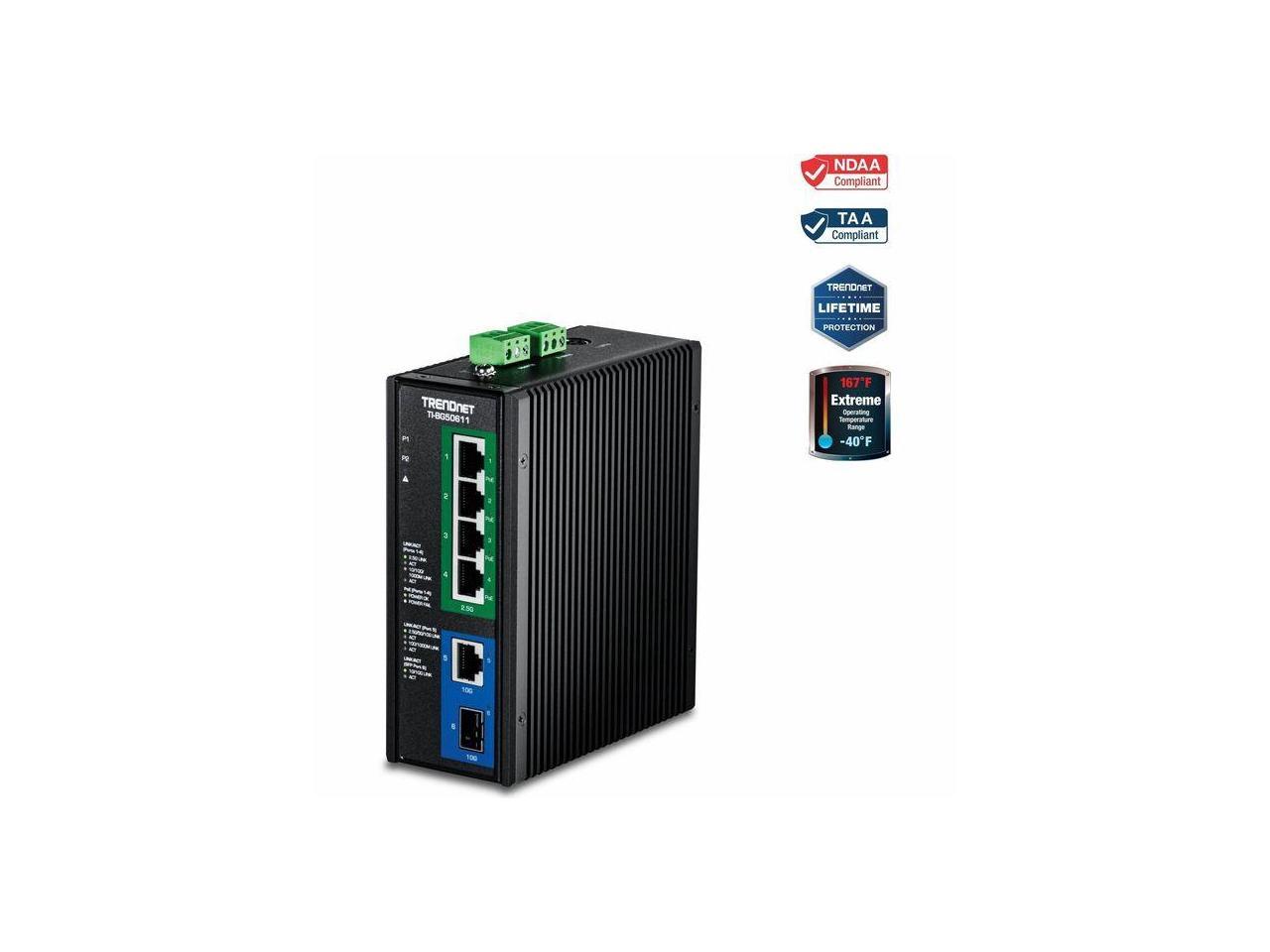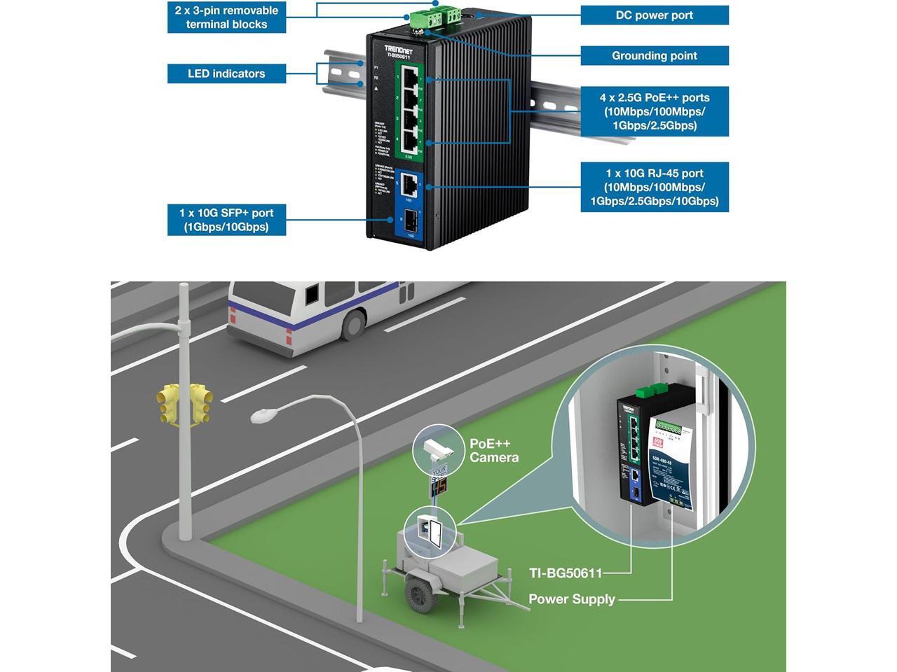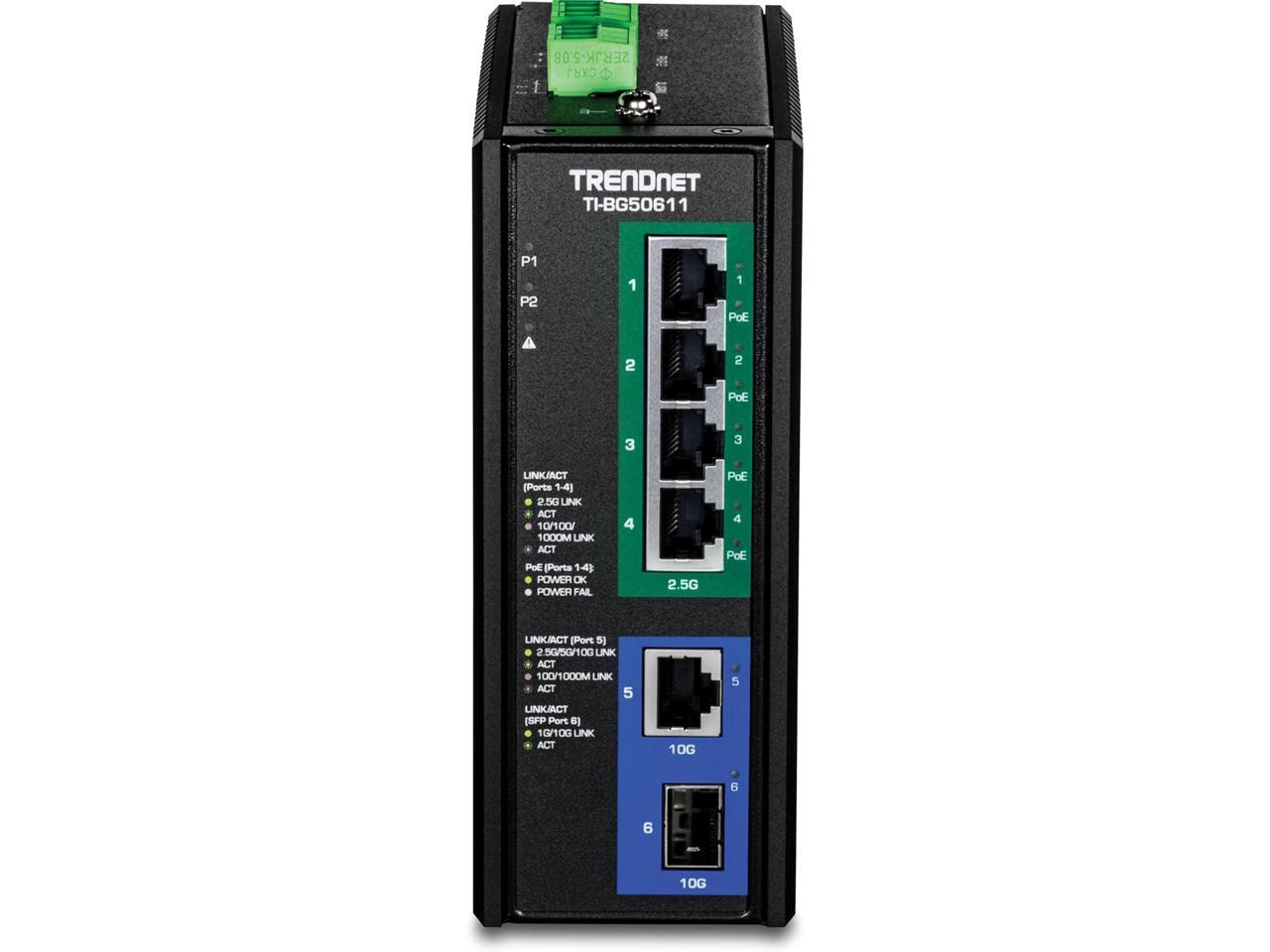 TRENDnet TI-BG50611 6-Port Industrial 2.5G PoE++ DIN-Rail Switch with 10G Ports