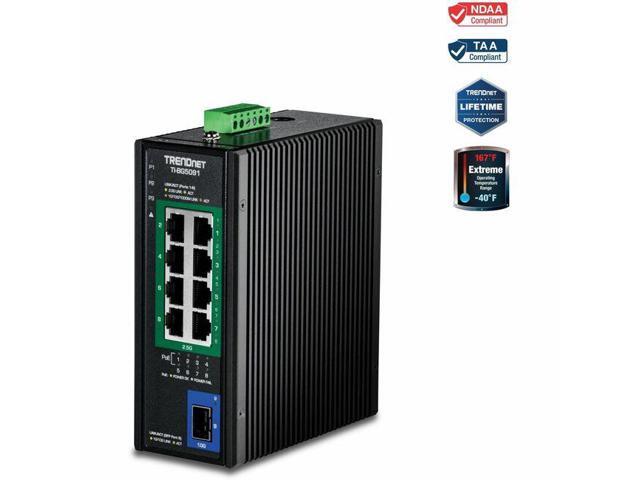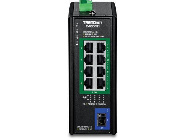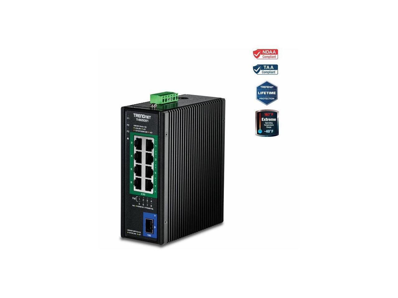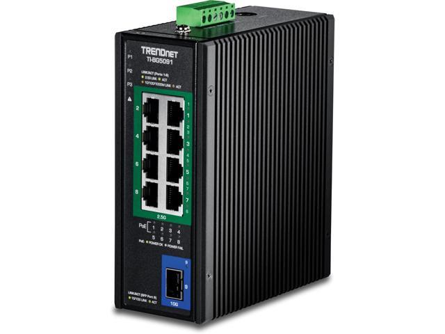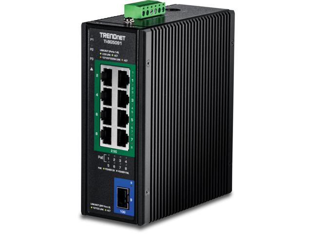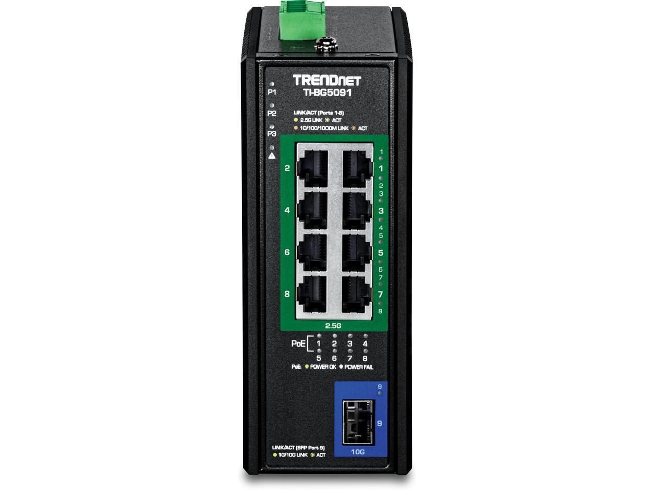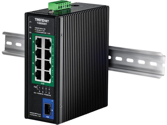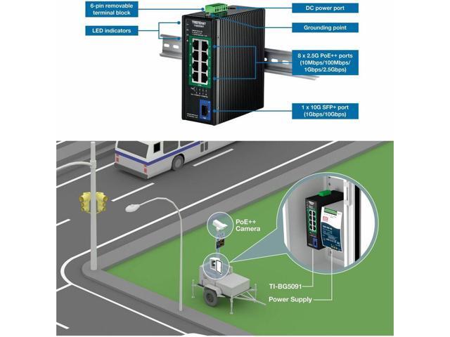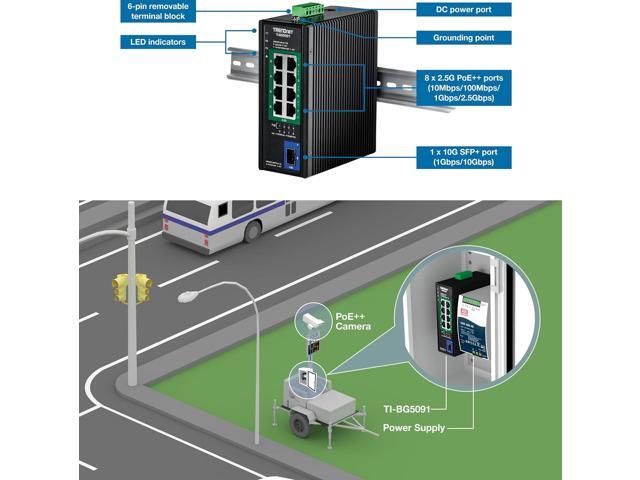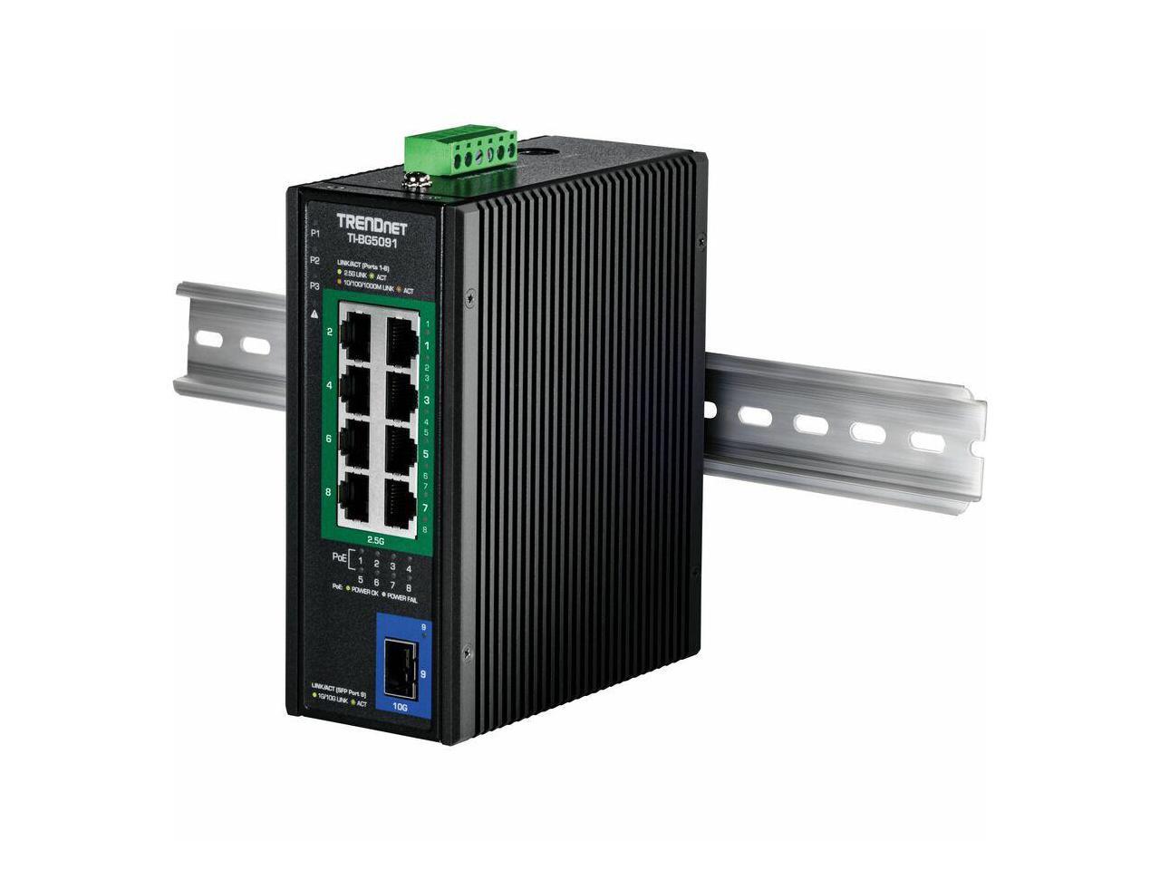TRENDnet 9-Port Industrial 2.5G DIN-Rail PoE++ Switch with 10G SFP+ Port - TI-BG5091 - Multi-Gigabit - 8 x 2.G PoE++ Ports - 1 x 10G SFP+ Port - 480W PoE Power Budget - 60Gbps - Black (TI-BG5091)