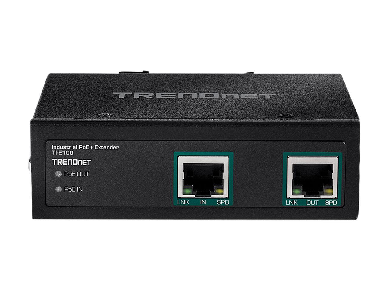 TRENDnet Industrial Gigabit PoE+ Extender, TI-E100, Single Port PoE, Power Over Ethernet, Supports PoE (15.4W) and PoE+ (30W), Extends 100m, Cascade 2 Units for Distance Up to 300m (984 ft.), IP30