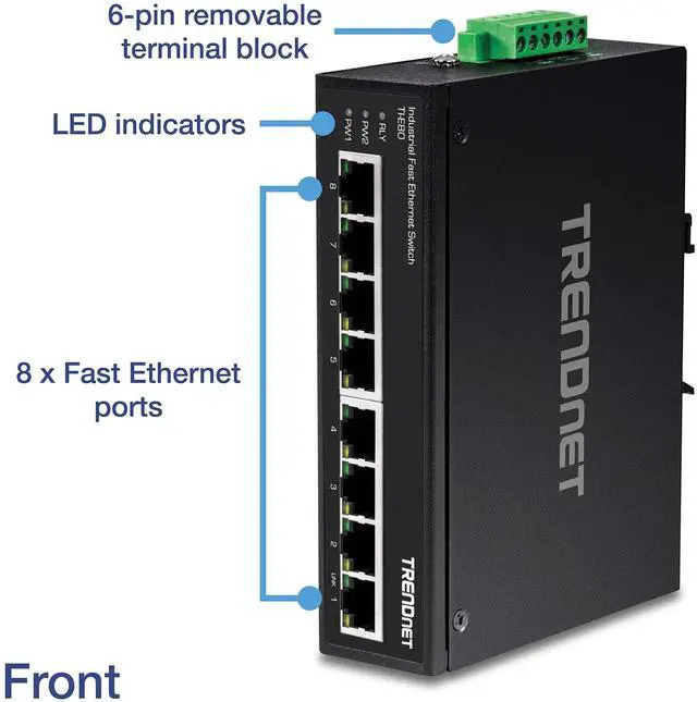 | Included Components | DIN-Rail / wall mount kit, Removable terminal block, TI-E80 |