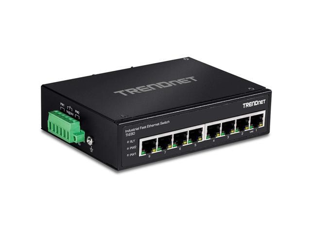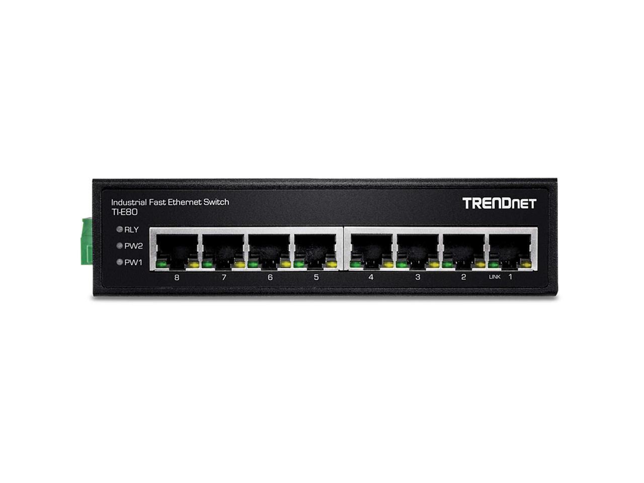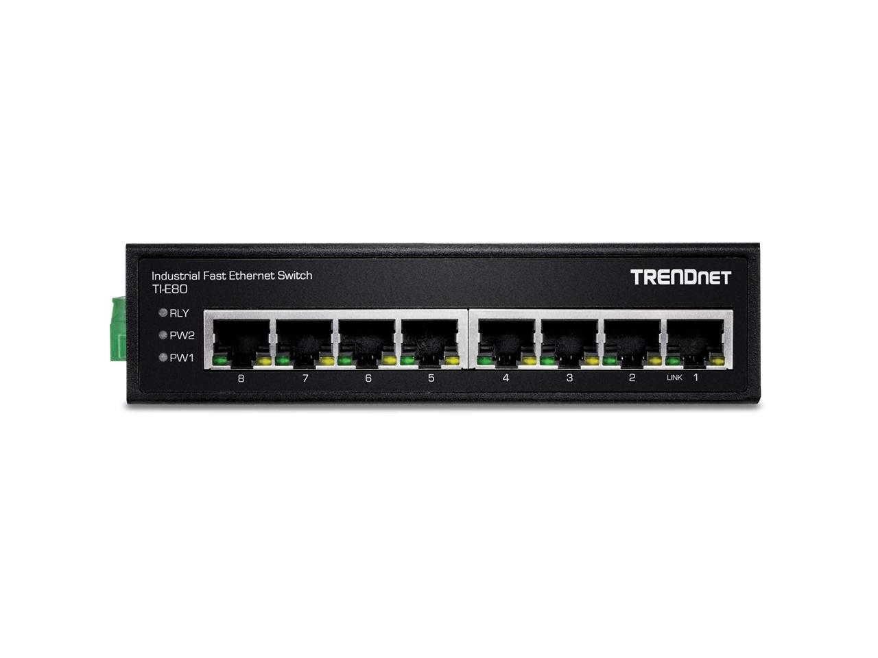 TRENDnet 8-Port Industrial Unmanaged Fast Ethernet DIN-Rail Switch; TI-E80 8 x Fast Ethernet Ports; 1.6Gbps Switching Capacity;8 Port Network Fast Ethernet Switch;IP30 Metal Switch;Lifetime Protection
