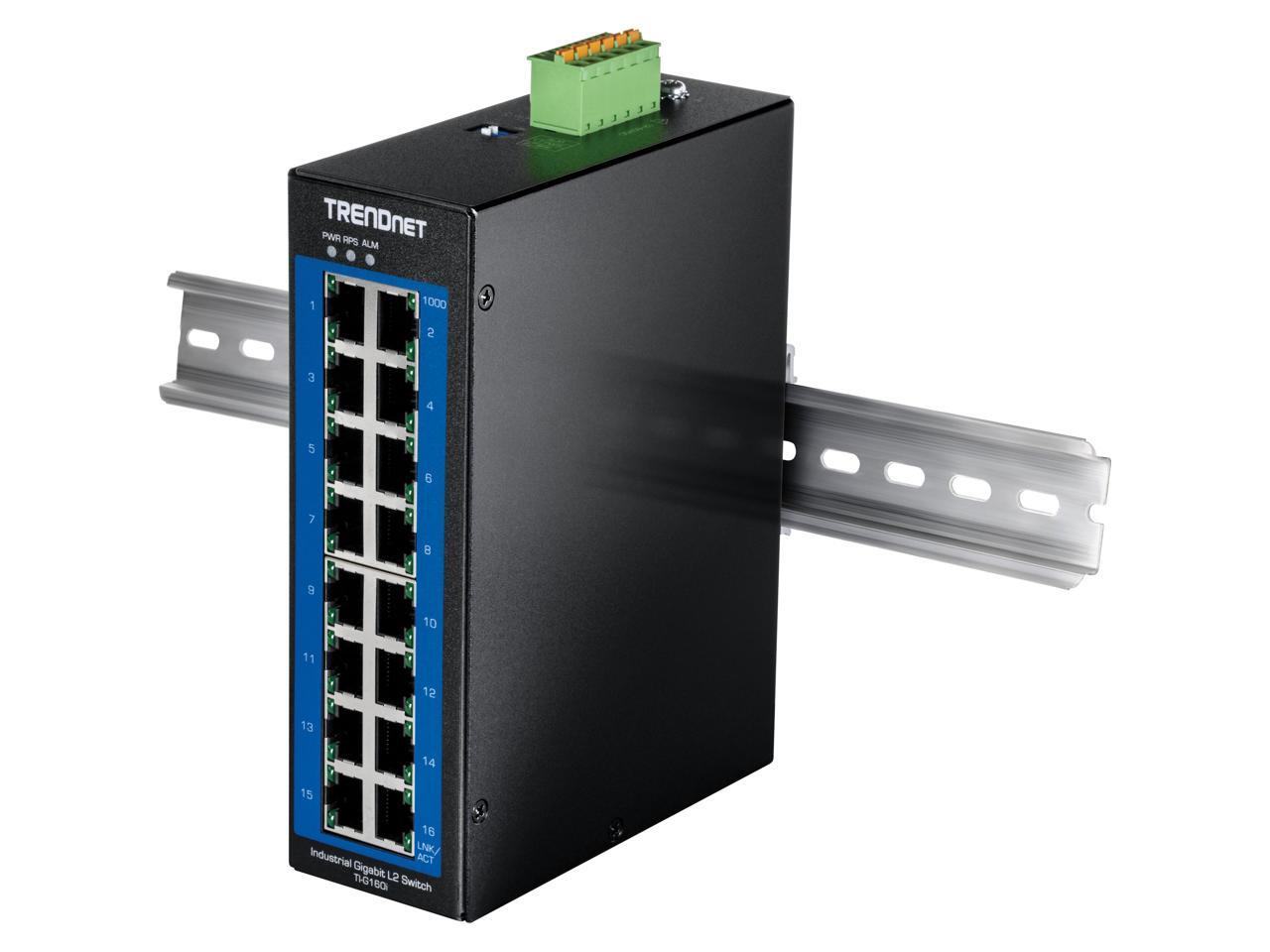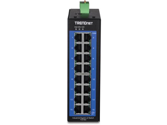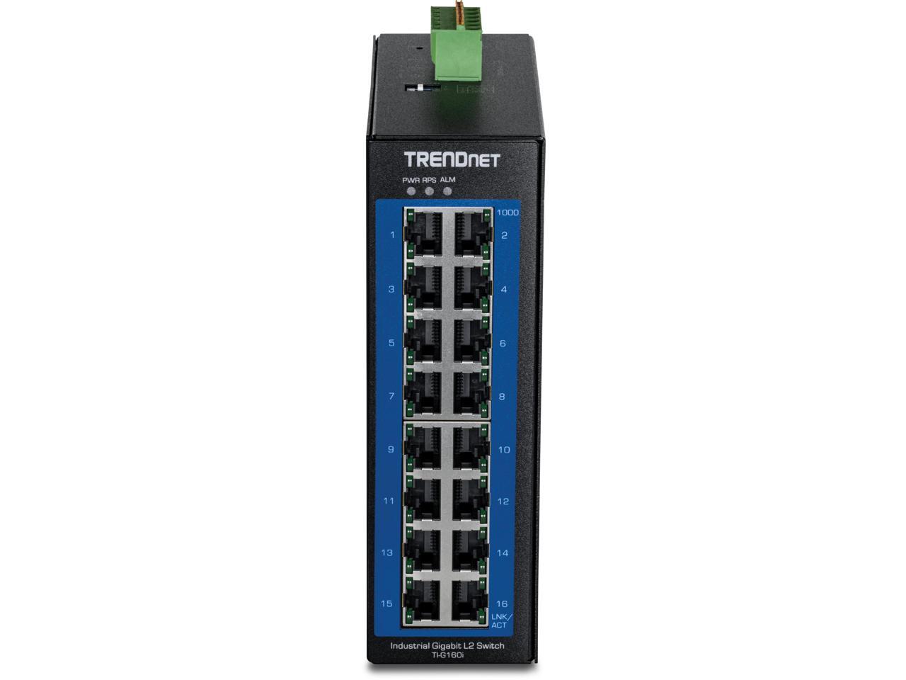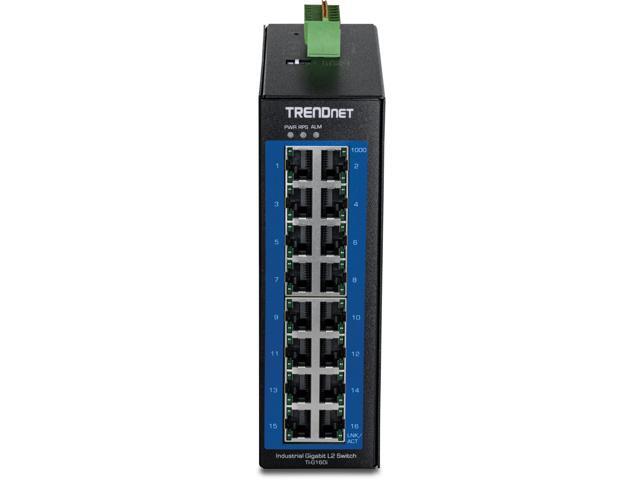 TRENDnet 16-Port Industrial Gigabit L2 Managed DIN-Rail Switch, Layer 2 Switch, 16 x Gigabit Ports, 32Gbps Switching Capacity, Extreme Temperature Gigabit Switch, Black, TI-G160i