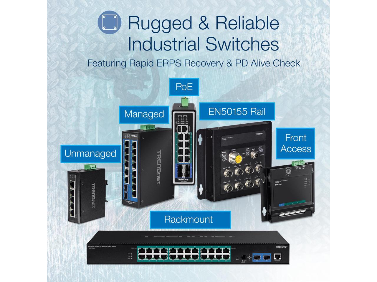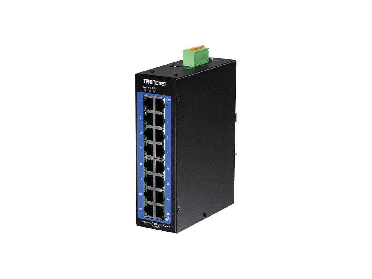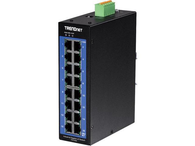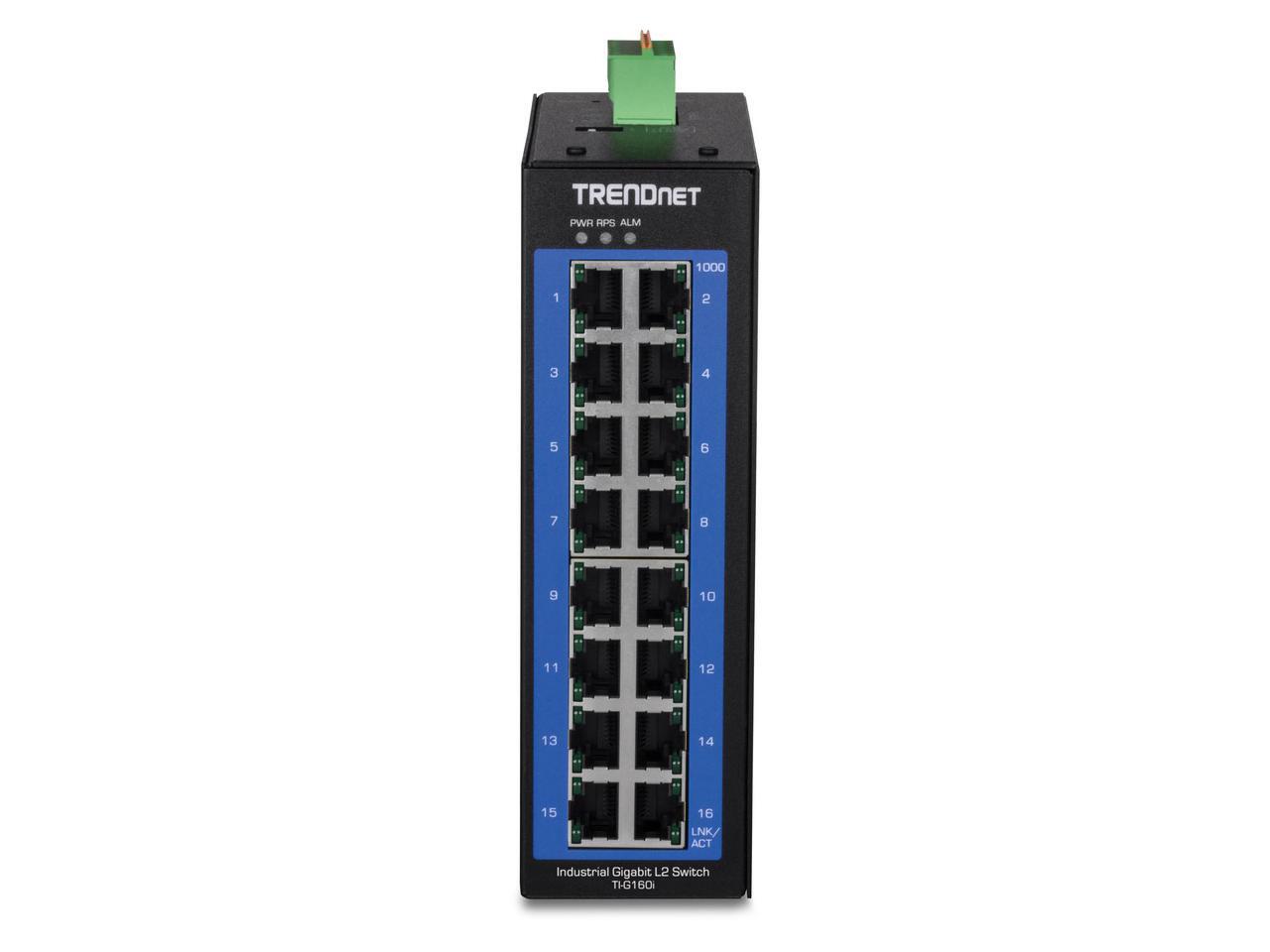 TRENDnet 16-Port Industrial Gigabit L2 Managed DIN-Rail Switch, Layer 2 Switch, 16 x Gigabit Ports, 32Gbps Switching Capacity, Extreme Temperature Gigabit Switch, Black, TI-G160i