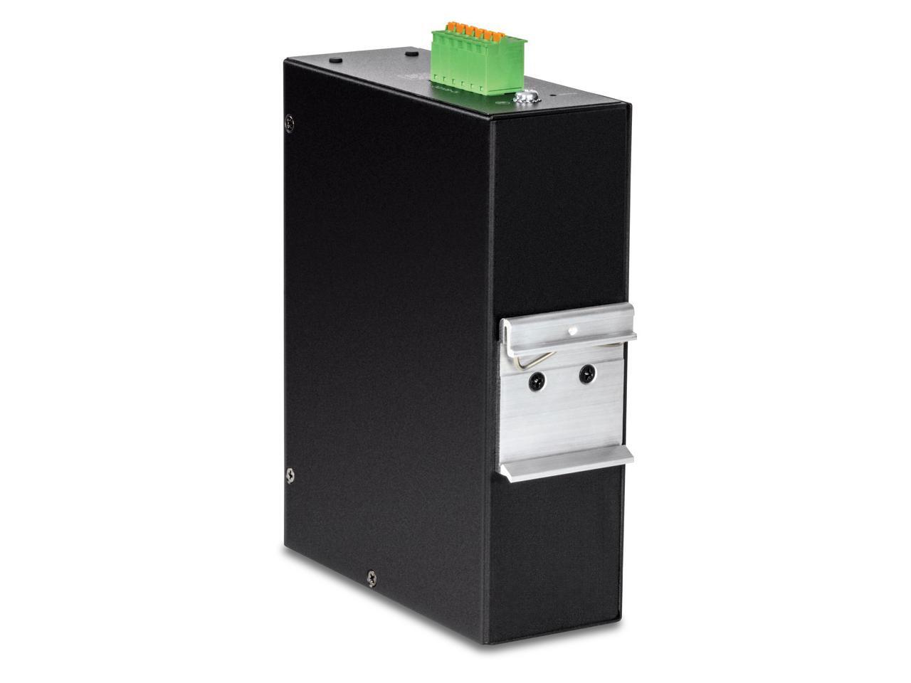 - Hardened IP30 rated metal housing, includes DIN-rail mounting bracket, power supply sold separately (models: TI-M6024, ti-s12024, TI-S12048, TI-S24048)