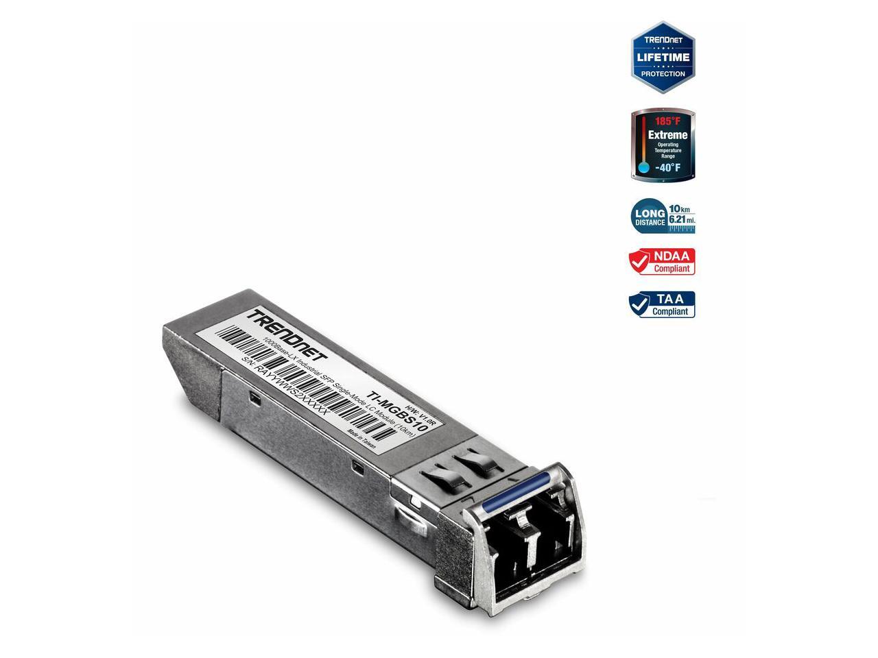 TRENDnet SFP to RJ45 Industrial Single-Mode LC Module (10km) 1000Base-LX Industrial SFP, Compliant with IEEE 802.3z Gigabit Ethernet, Data Rates of up to 1.25Gbps, Lifetime Protection, TI-MGBS10