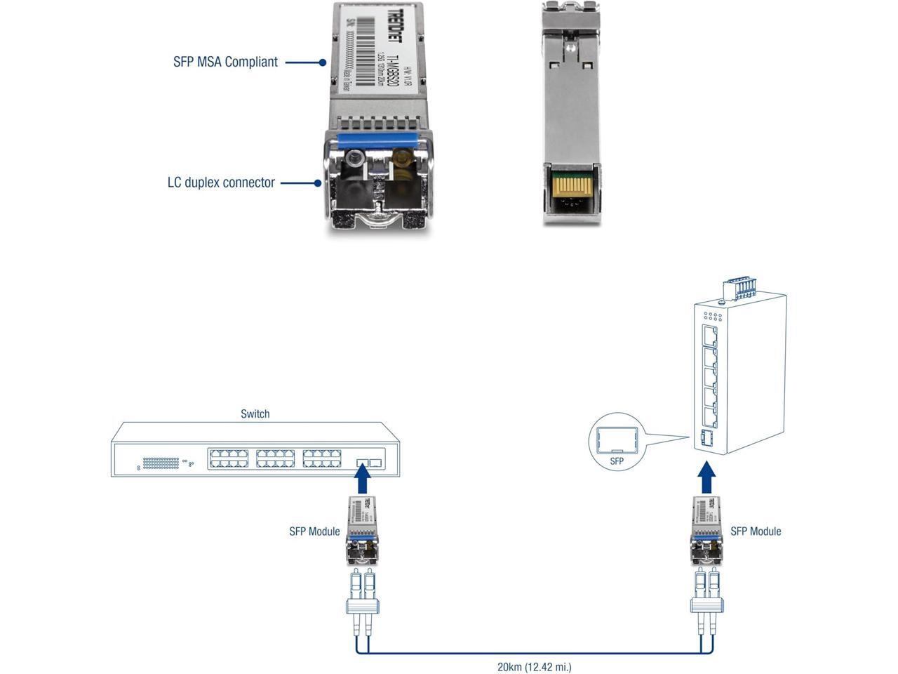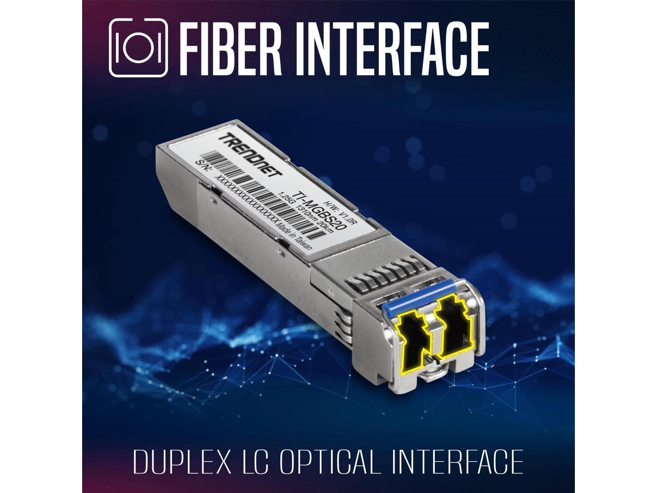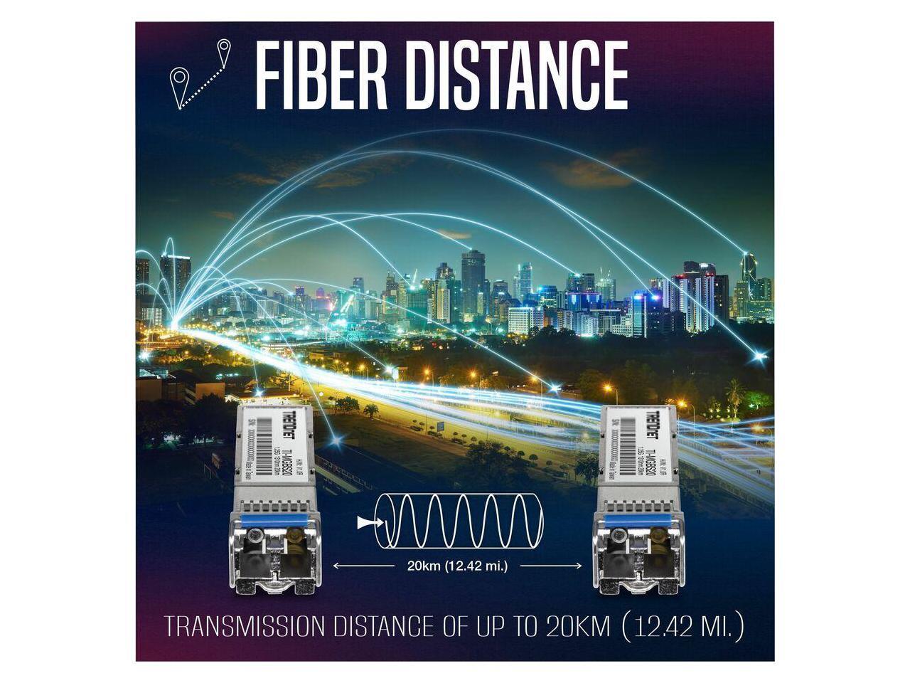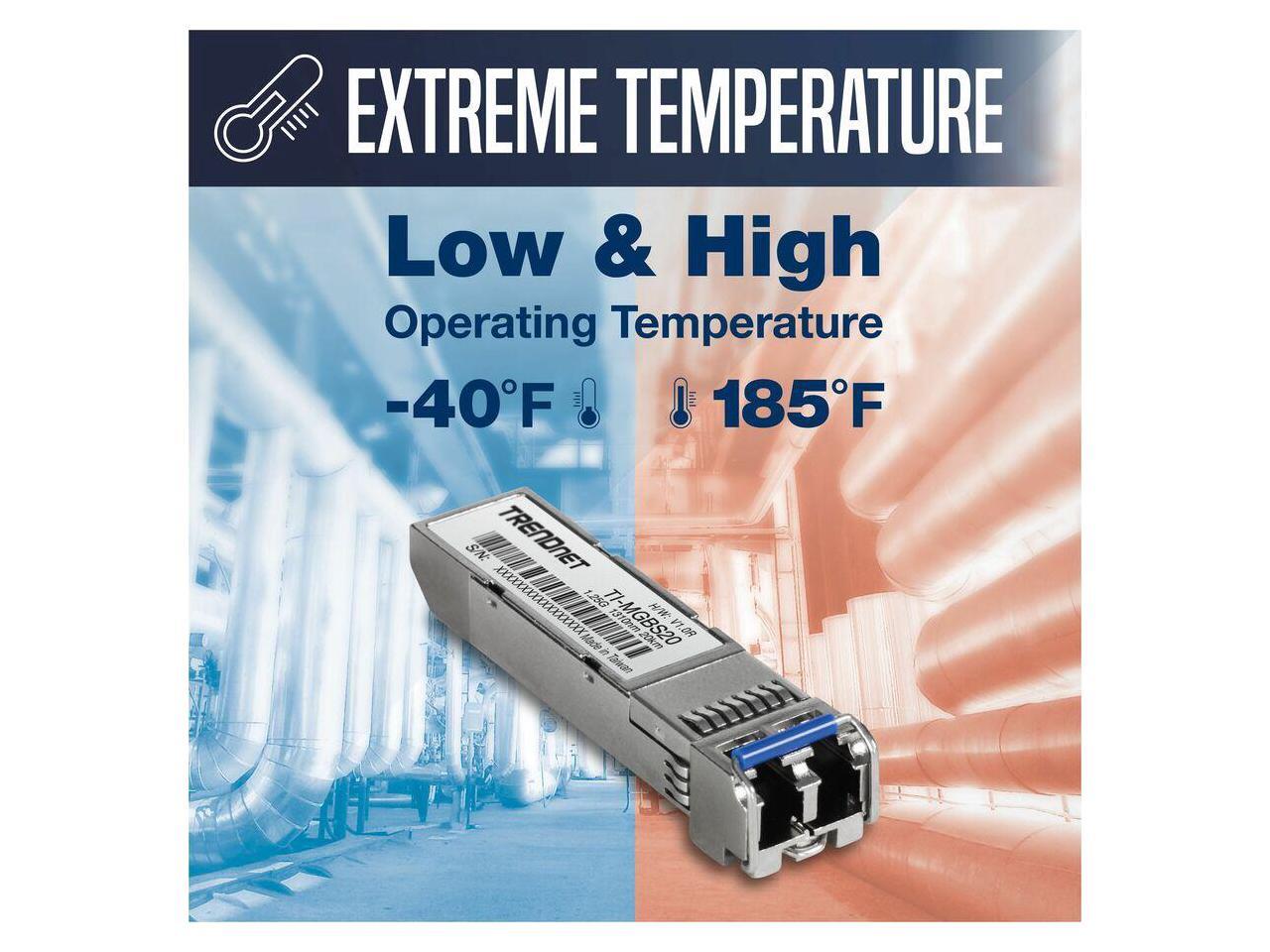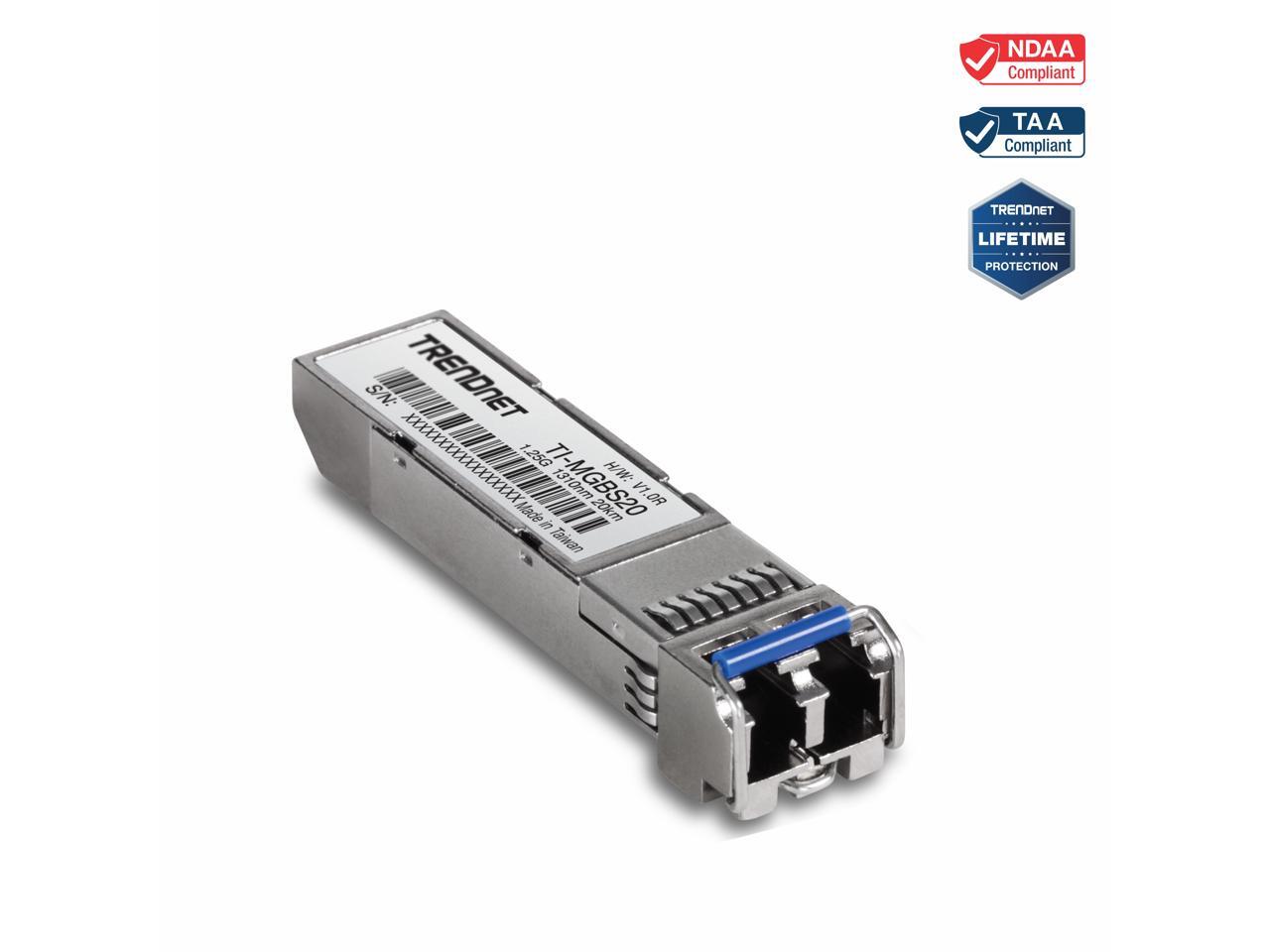 TRENDnet TI-MGBS20, 1000Base-LX Industrial SFP Single- Mode LC Module (20km), Lifetime Protection