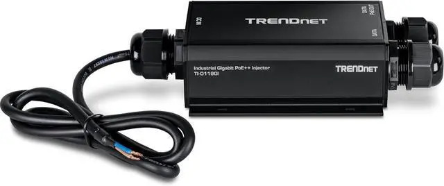 TRENDnets Outdoor IP67 Gigabit PoE++ Injector, model TI-O119GI, is an 802.3 bt PoE++ injector that combines electrical power