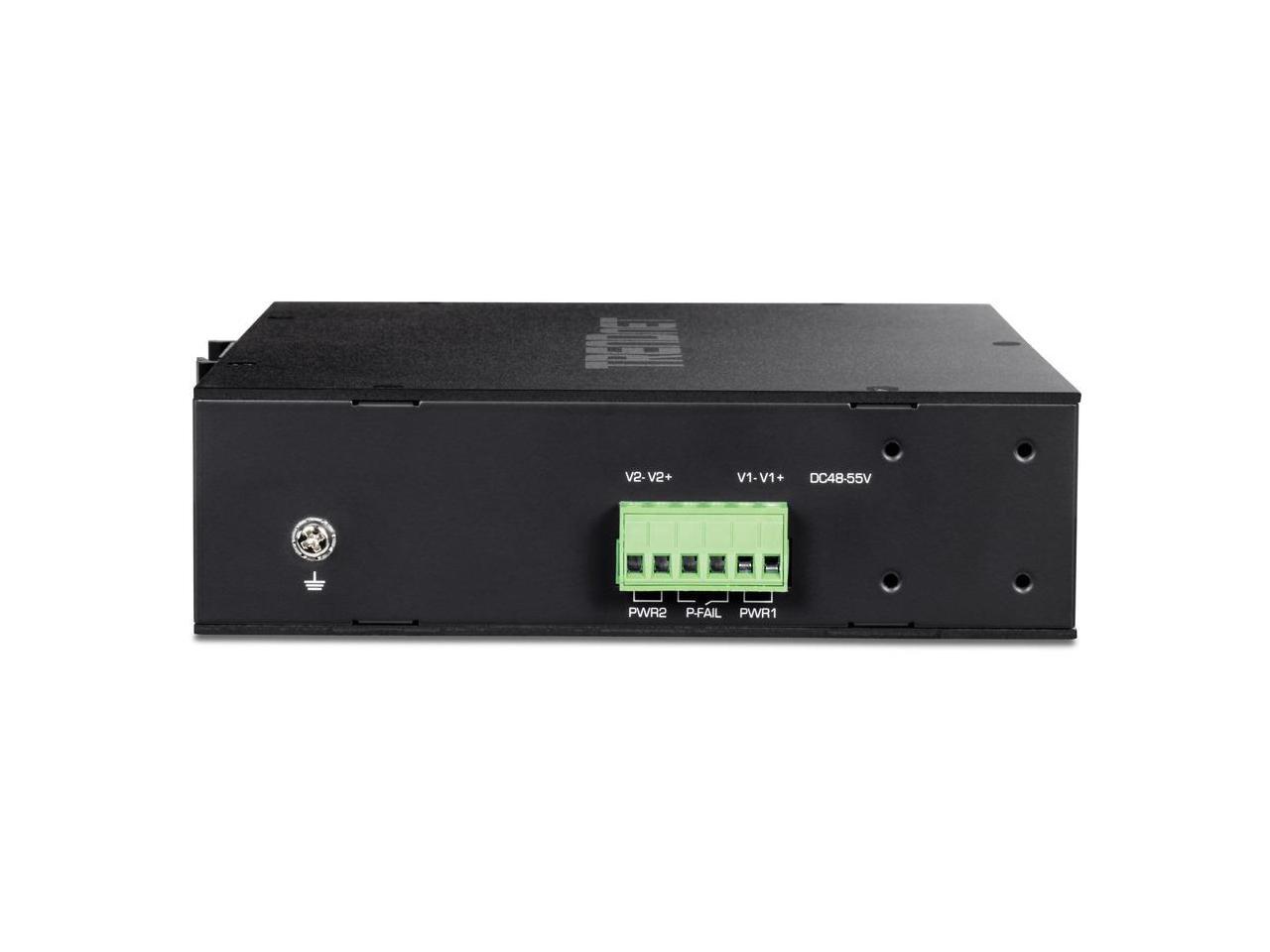 TRENDnet 10-Port Industrial Gigabit PoE+ Switch, WideTemperature Range -20° – 65°C (-4° – 149°F), DIN Rail Switch, 50-55V DC, 8 x Gigabit PoE+ Ports, 2 x Gigabit SFP Slots, TI-PGM102, Black