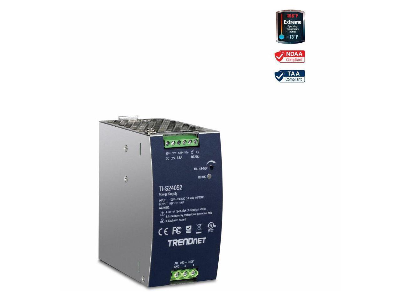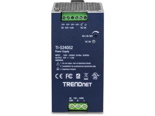 TRENDnet TI-S24052, 240W, 52V DC, 4.61A AC to DC DIN-Rail Power Supply