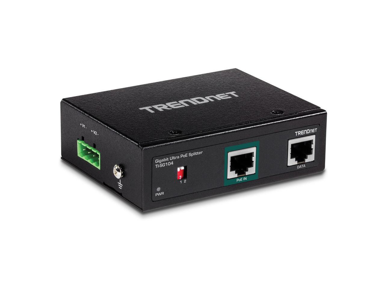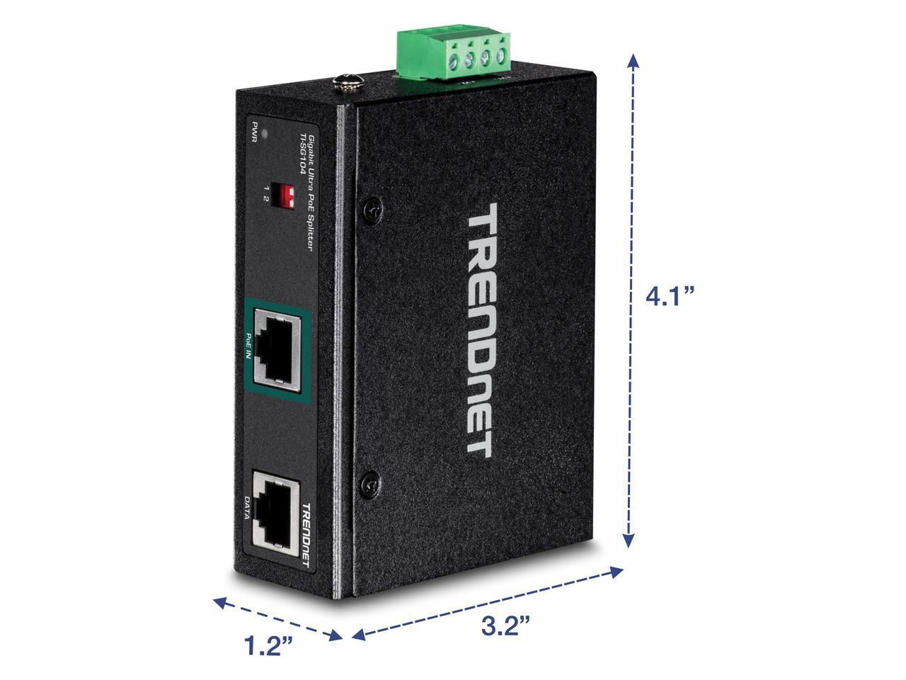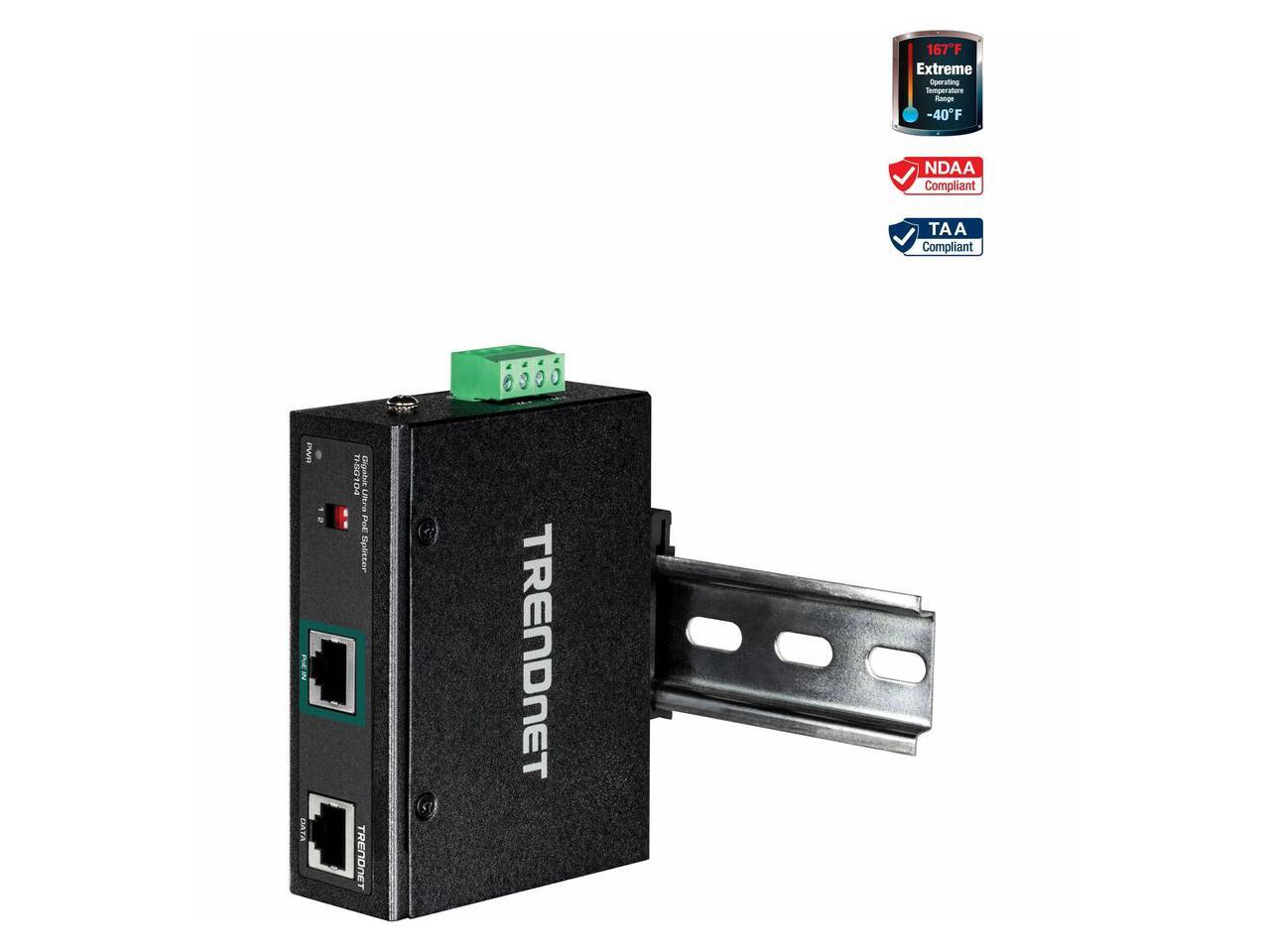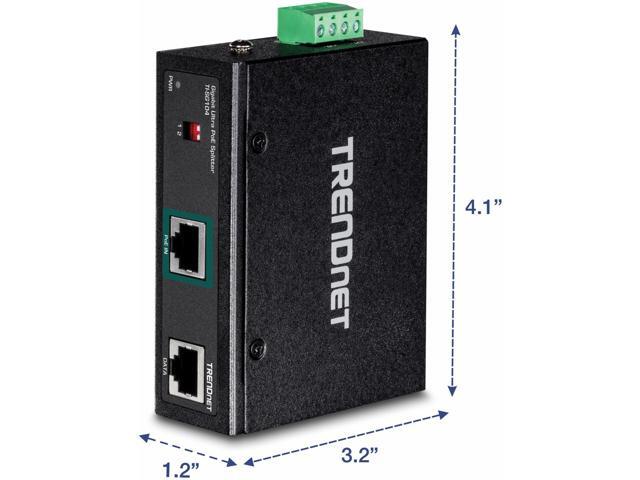 TRENDnet Industrial Gigabit UPoE Splitter, Dual DC Power Outputs, DIN-Rail or Wall-Mountable, Adjustable Voltage Output, TI-SG104