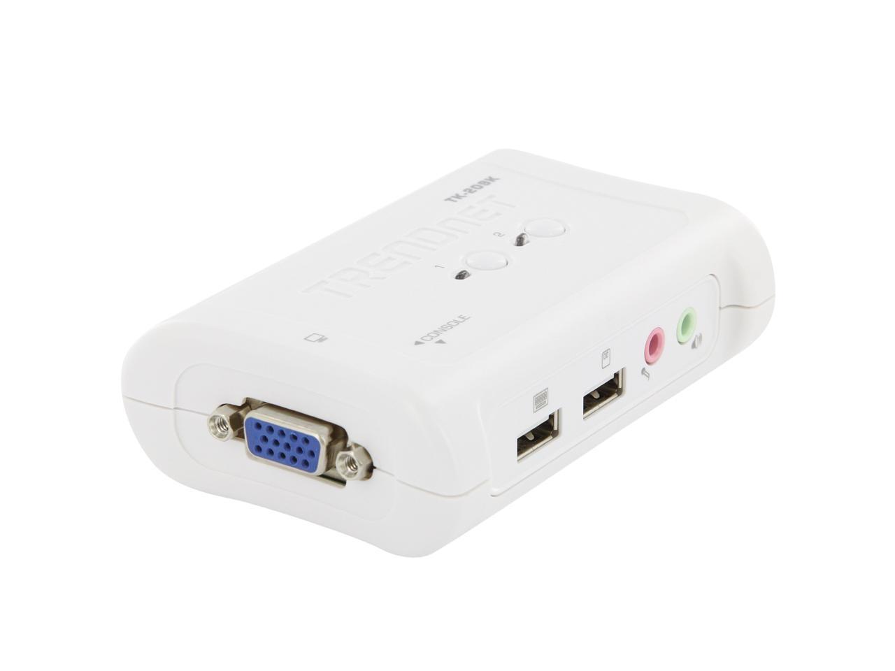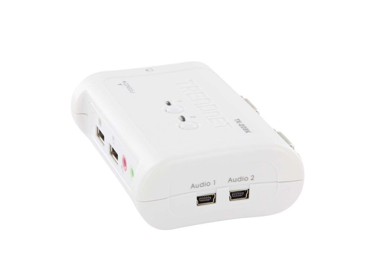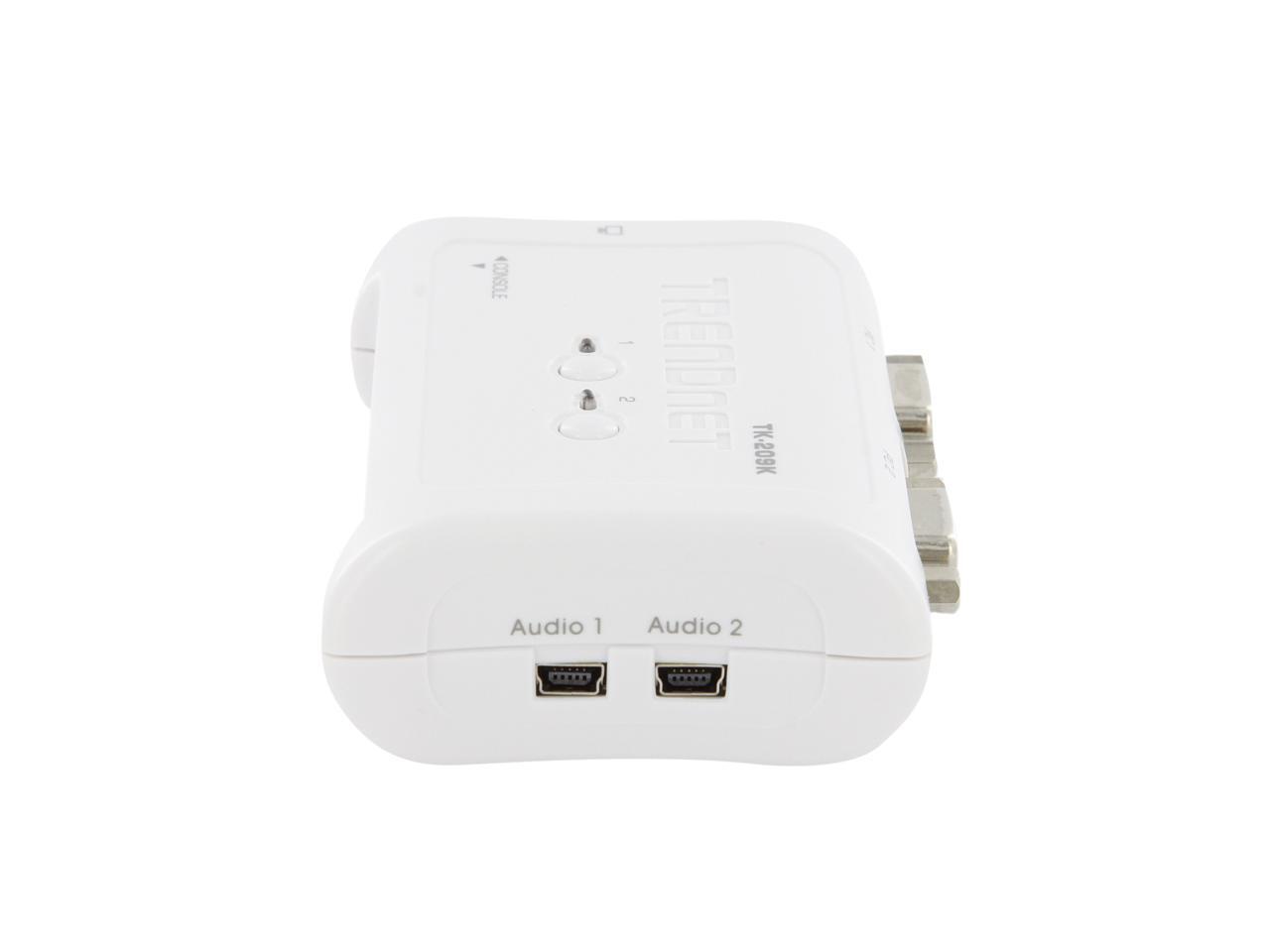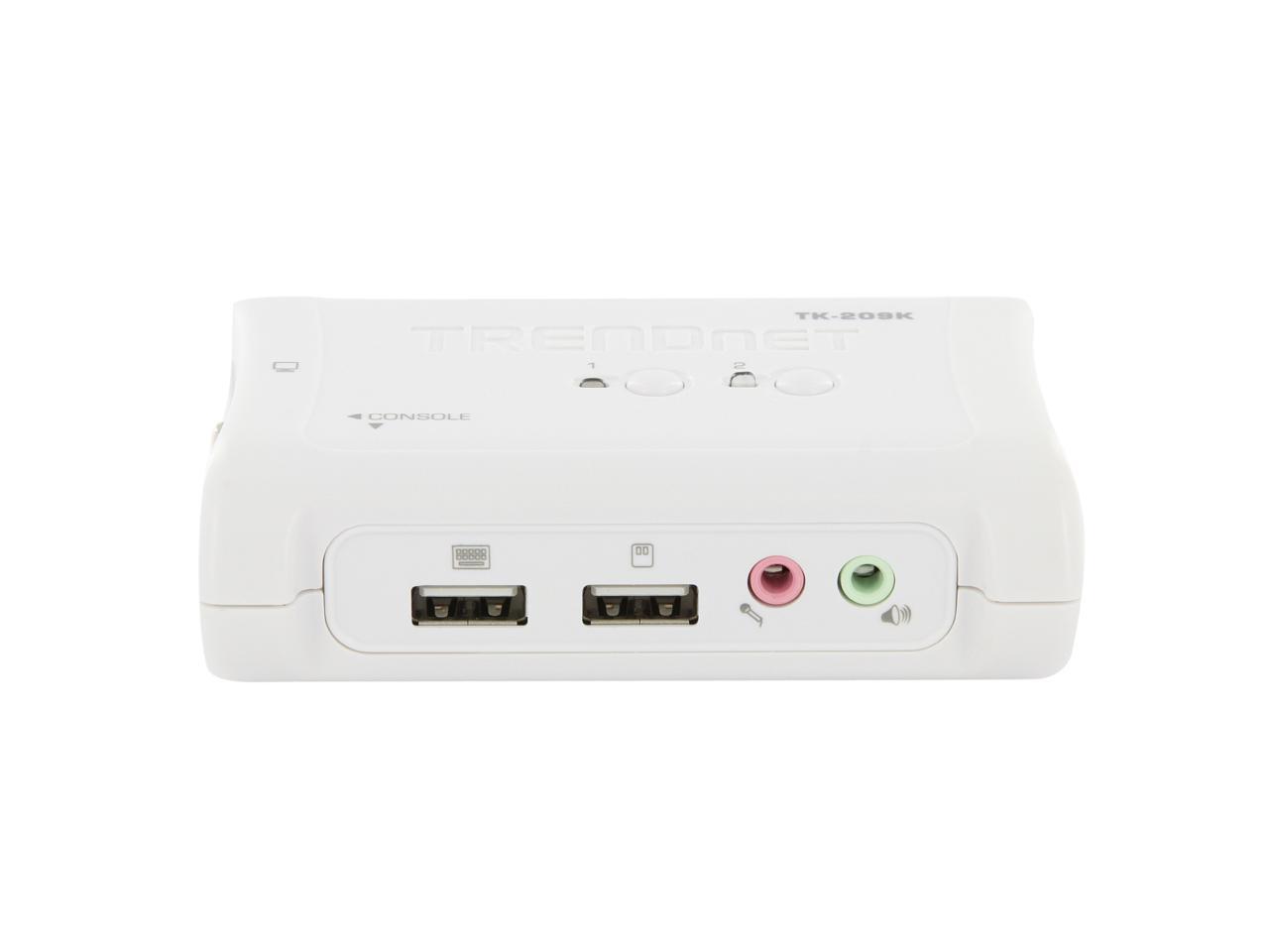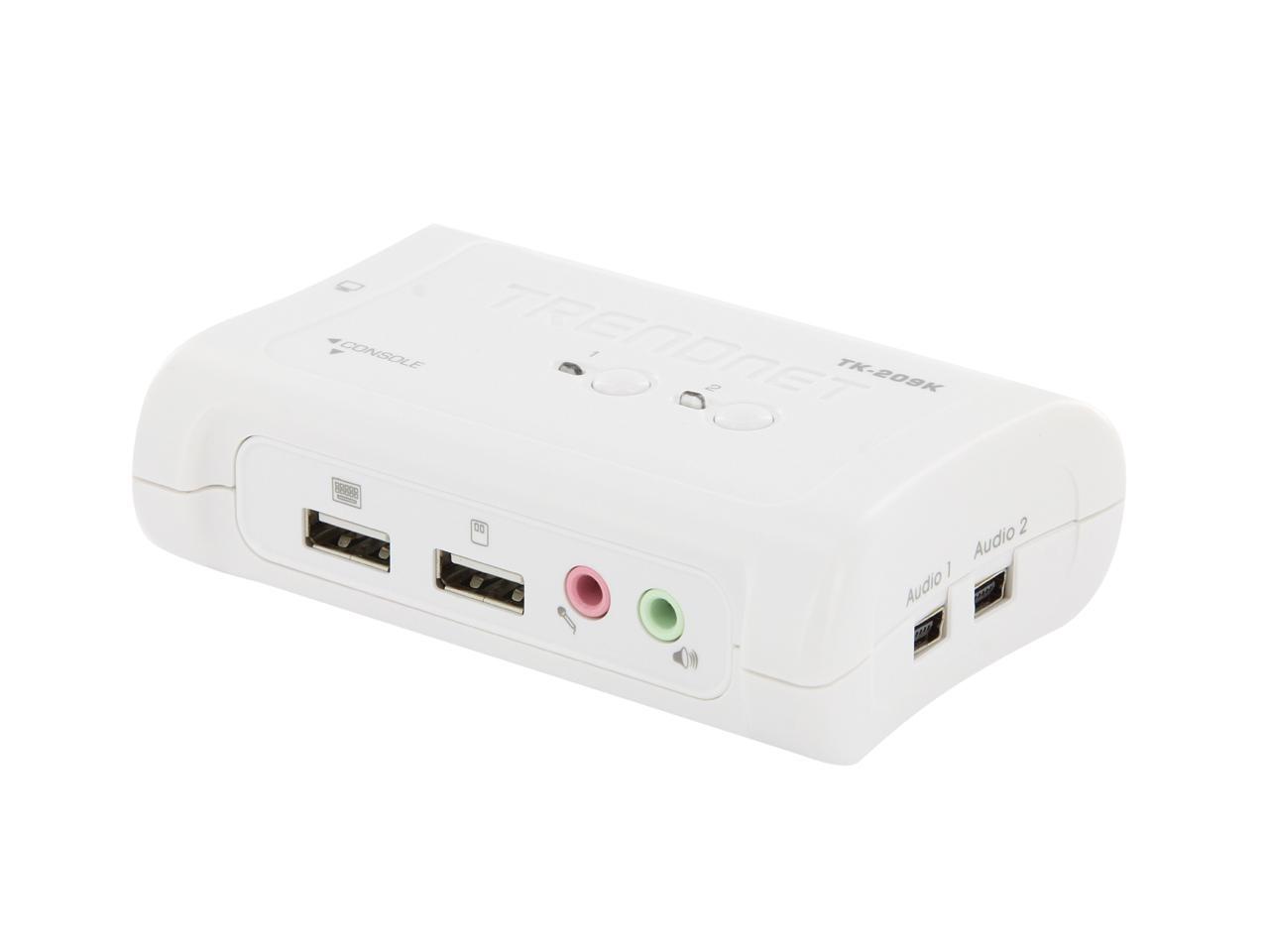 The 2-Port USB Audio KVM Switch lets you control multimedia PCs with just one keyboard, monitor, mouse, microphone, and a set of speakers. The KVM switch not only allows you to share your monitor, keyboard and mouse but you can also share microphone and speakers. With just a simple press of a button, this KVM switch eliminates the hassle of cable swapping and switching between 2 PCs. With it's Hot-Plug, Auto-Scan and Hot-Key operating features, the TK-209K is the perfect choice for managing 2 PCs. Separate KVM cables are included. RoHS compliant