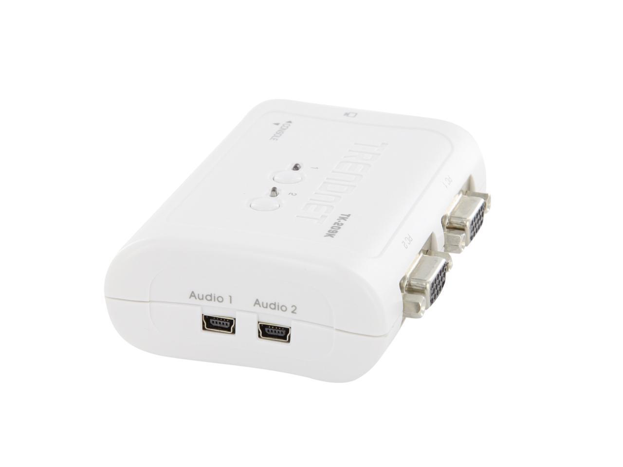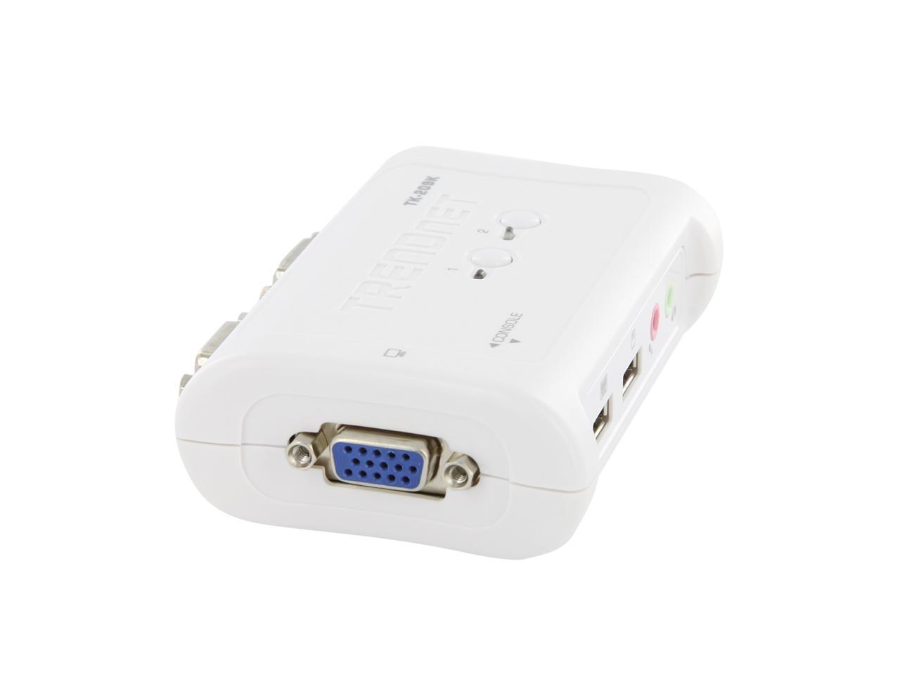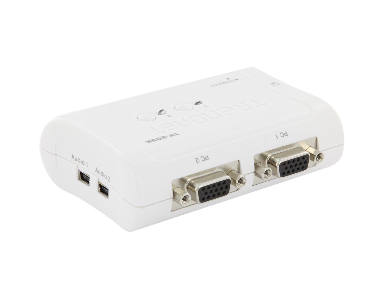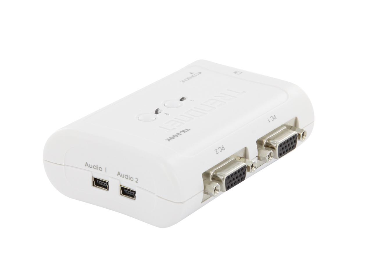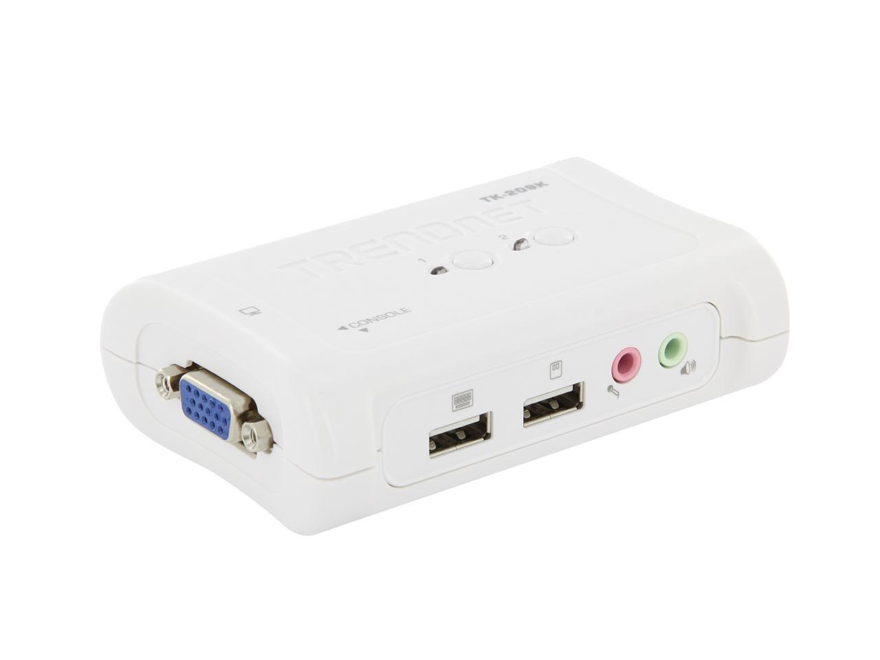 The 2-Port USB Audio KVM Switch lets you control multimedia PCs with just one keyboard, monitor, mouse, microphone, and a set of speakers. The KVM switch not only allows you to share your monitor, keyboard and mouse but you can also share microphone and speakers. With just a simple press of a button, this KVM switch eliminates the hassle of cable swapping and switching between 2 PCs. With it's Hot-Plug, Auto-Scan and Hot-Key operating features, the TK-209K is the perfect choice for managing 2 PCs. Separate KVM cables are included. RoHS compliant