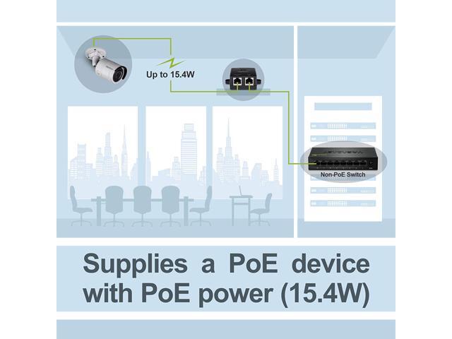 - Converts a non-PoE Gigabit port to a PoE Gigabit port