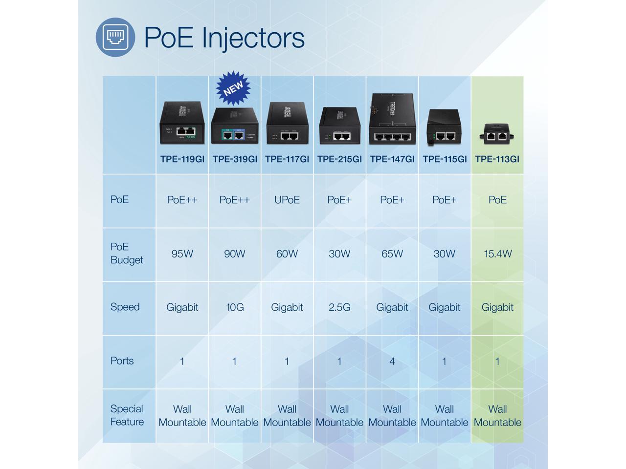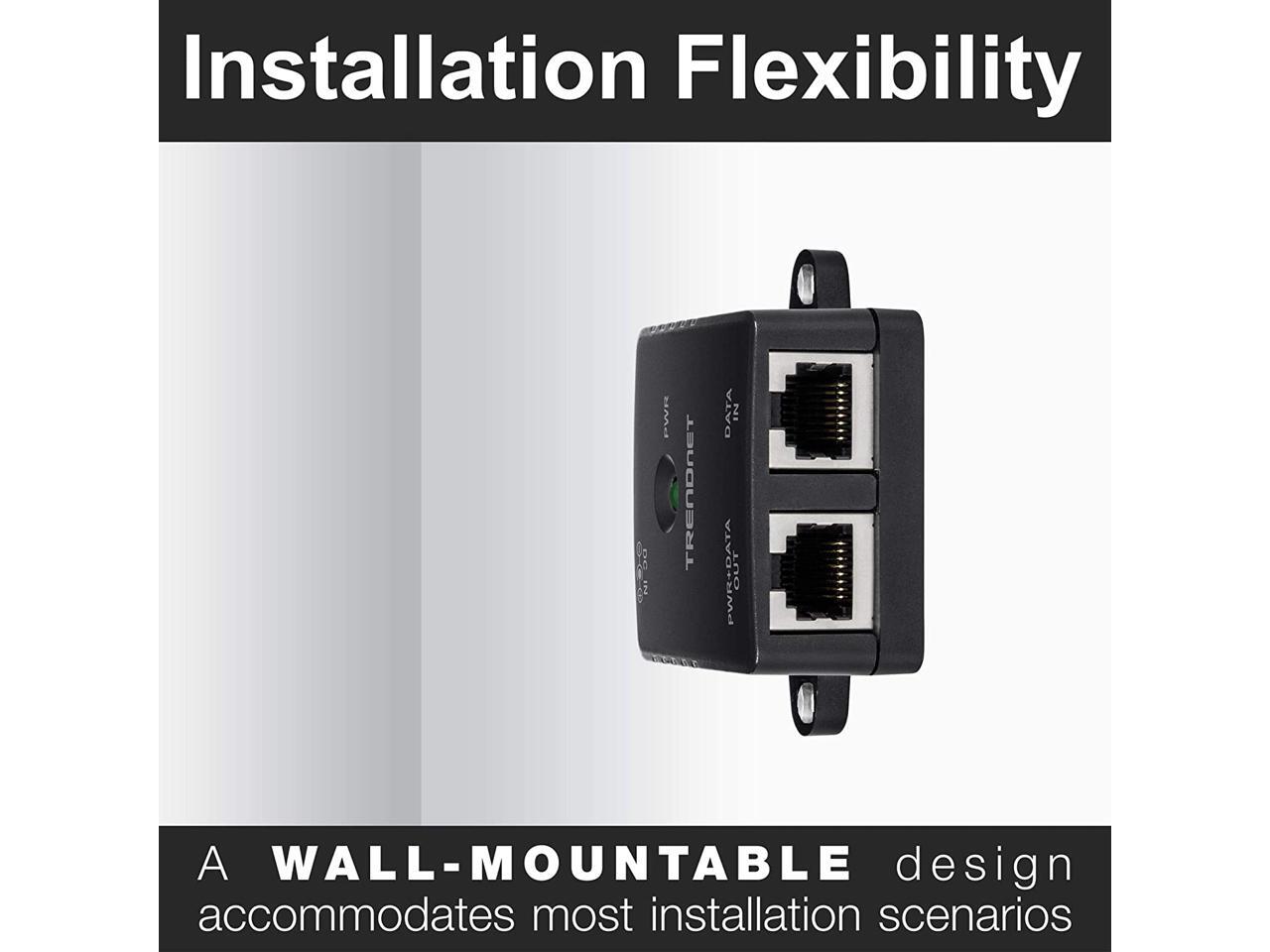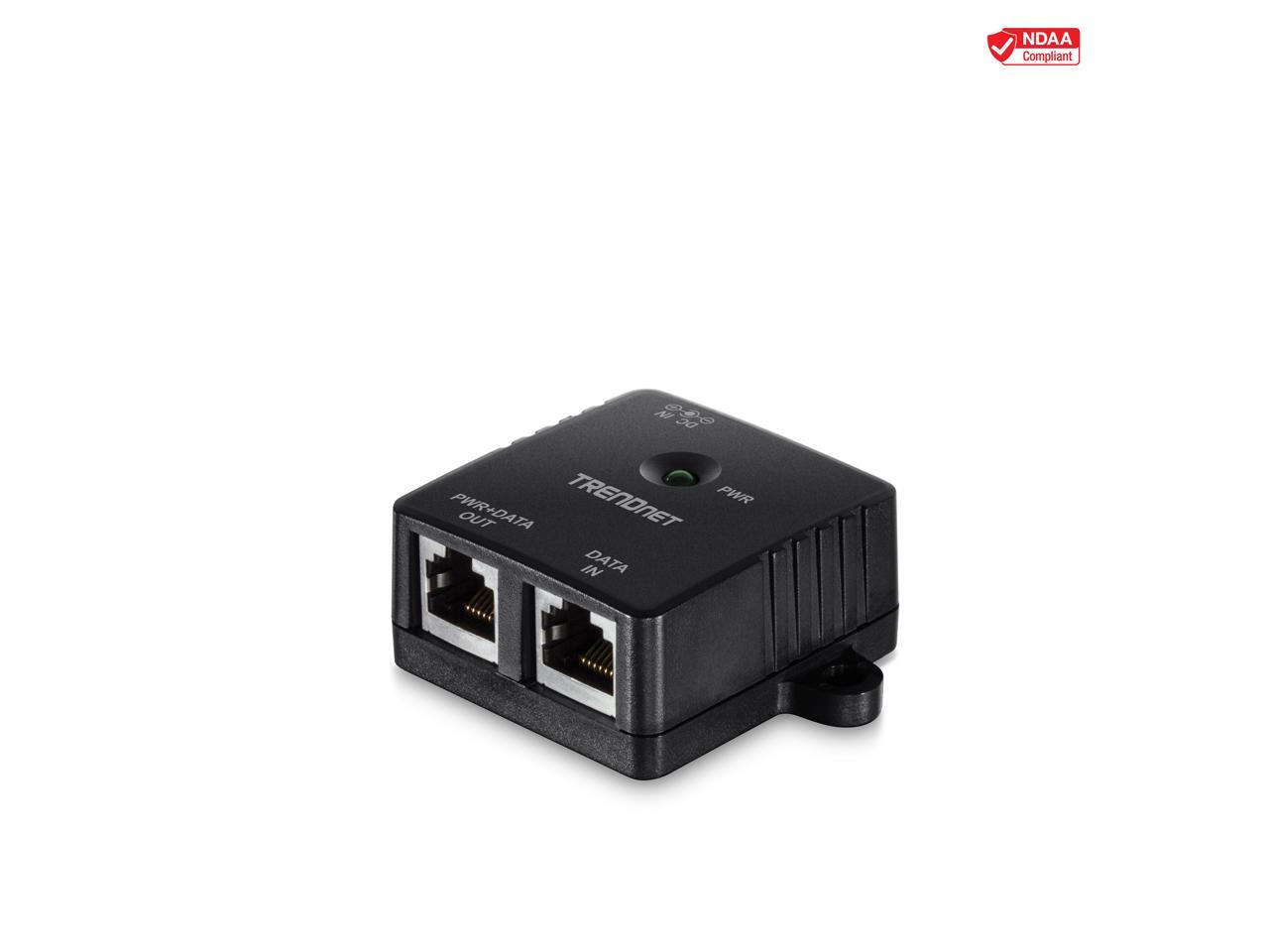 TRENDnet Gigabit Power Over Ethernet Injector, Full Duplex Gigabit Speeds, 1 x Gigabit Ethernet Port, 1 x PoE Gigabit Ethernet Port, Network Devices Up To 100M (328 ft), 15.4W, Black, TPE-113GI