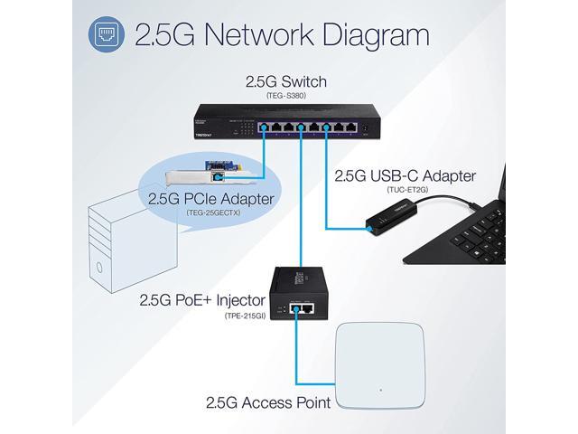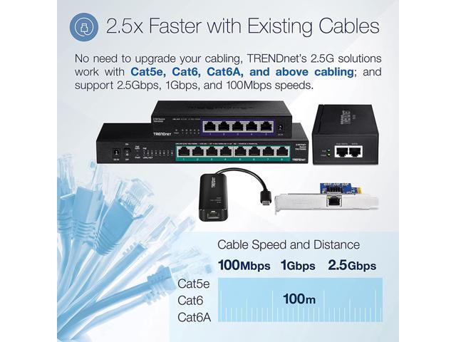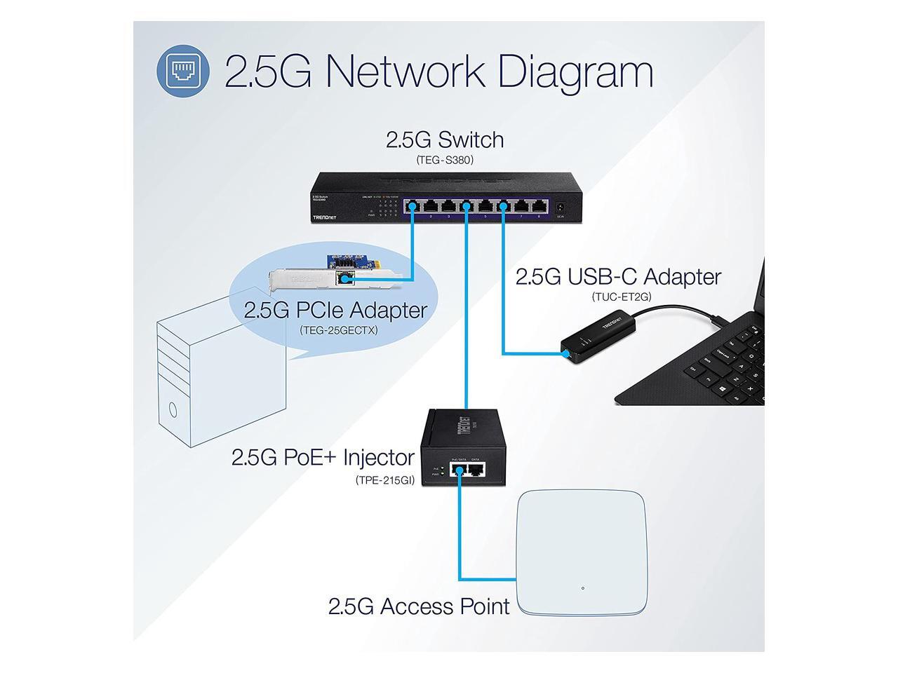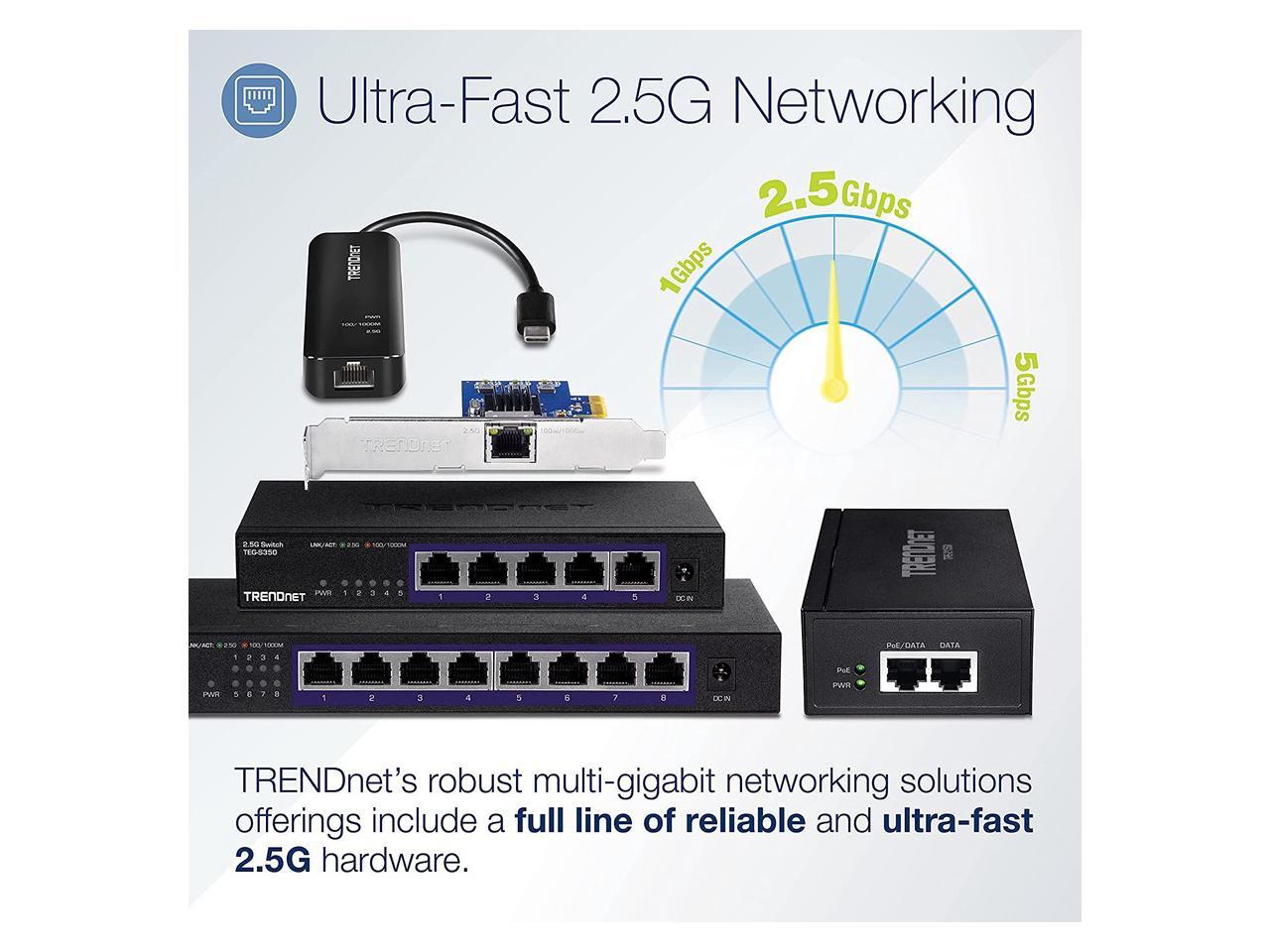 - 2.5G Speeds: Equipped with a 2.5GBASE-T RJ-45 port providing network speeds of up to 2.5Gbps over existing Cat5e or better cabling